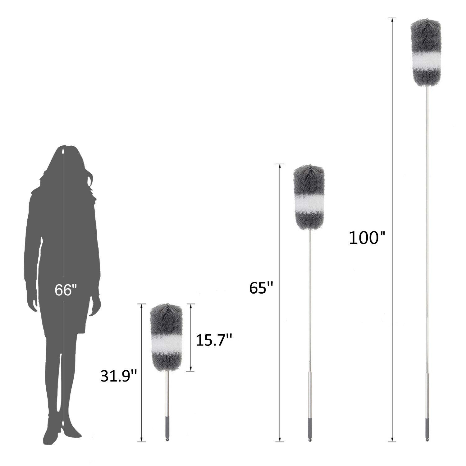 EXTRA LONG POLE: The stainless steel pole is 100” when fully extended, which makes this BOOMJOY duster able to easily clean ceilings, ceiling fans, lamps, cobwebs and etc
