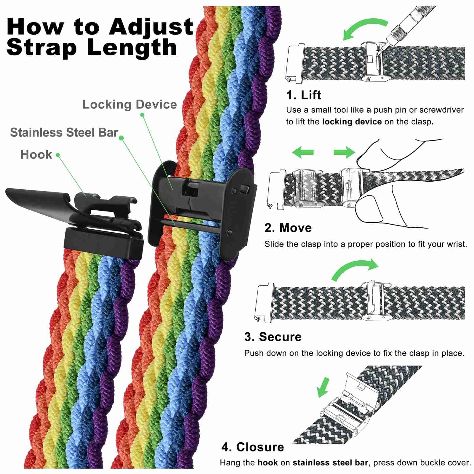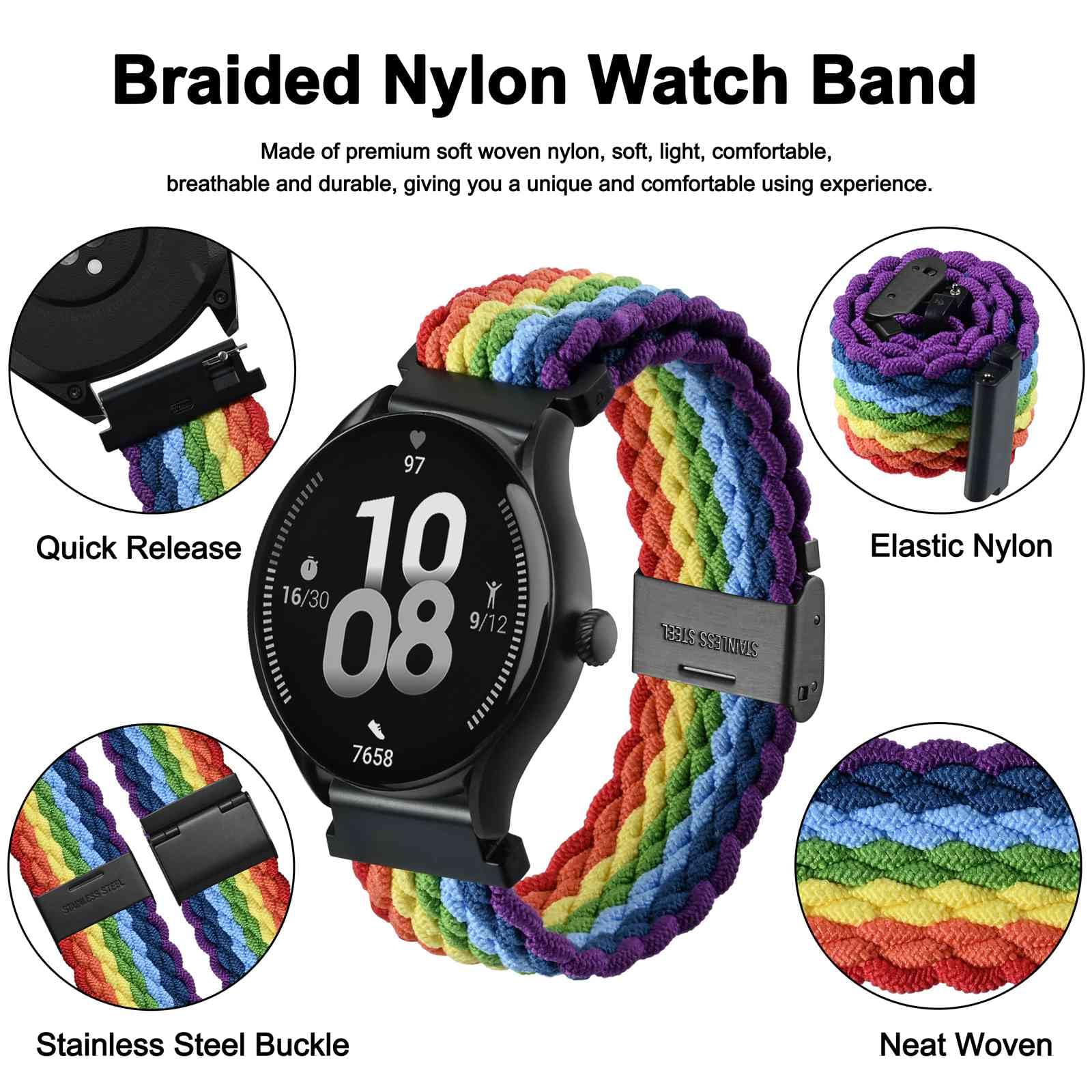 Braided Watch Band: This watch strap is made of quality stretchable yarn interwoven with silicone threads with adjustable buckle, soft, lightweight, breathable, washable, durable and comfortable to wear. Perfect for sports and everyday use.