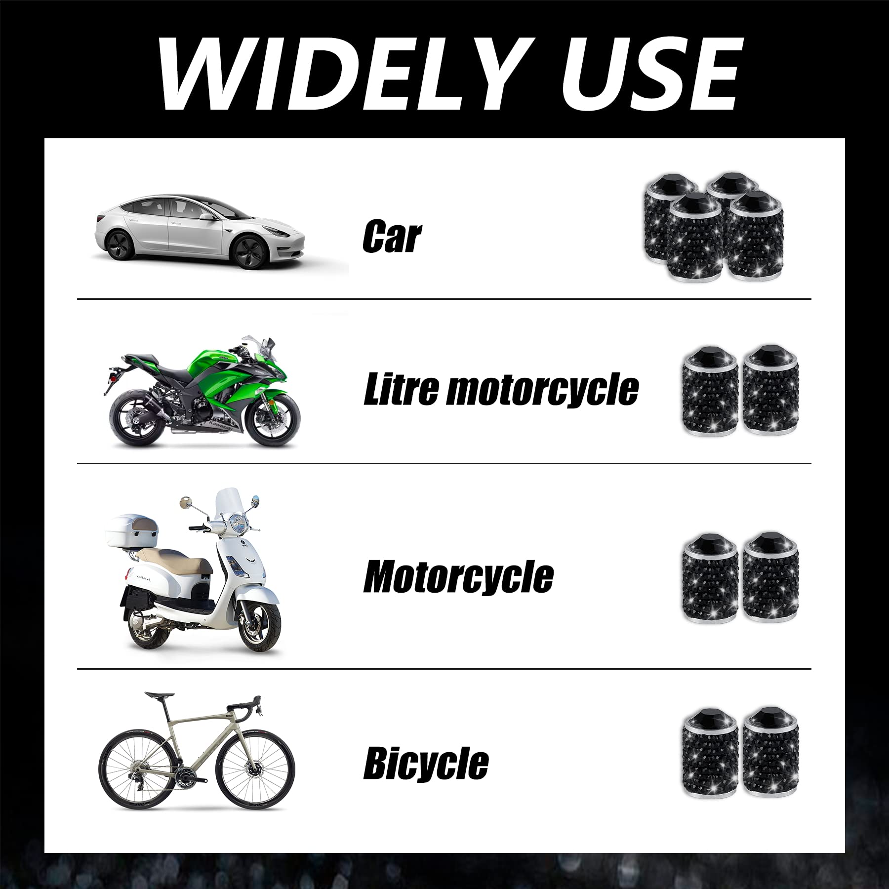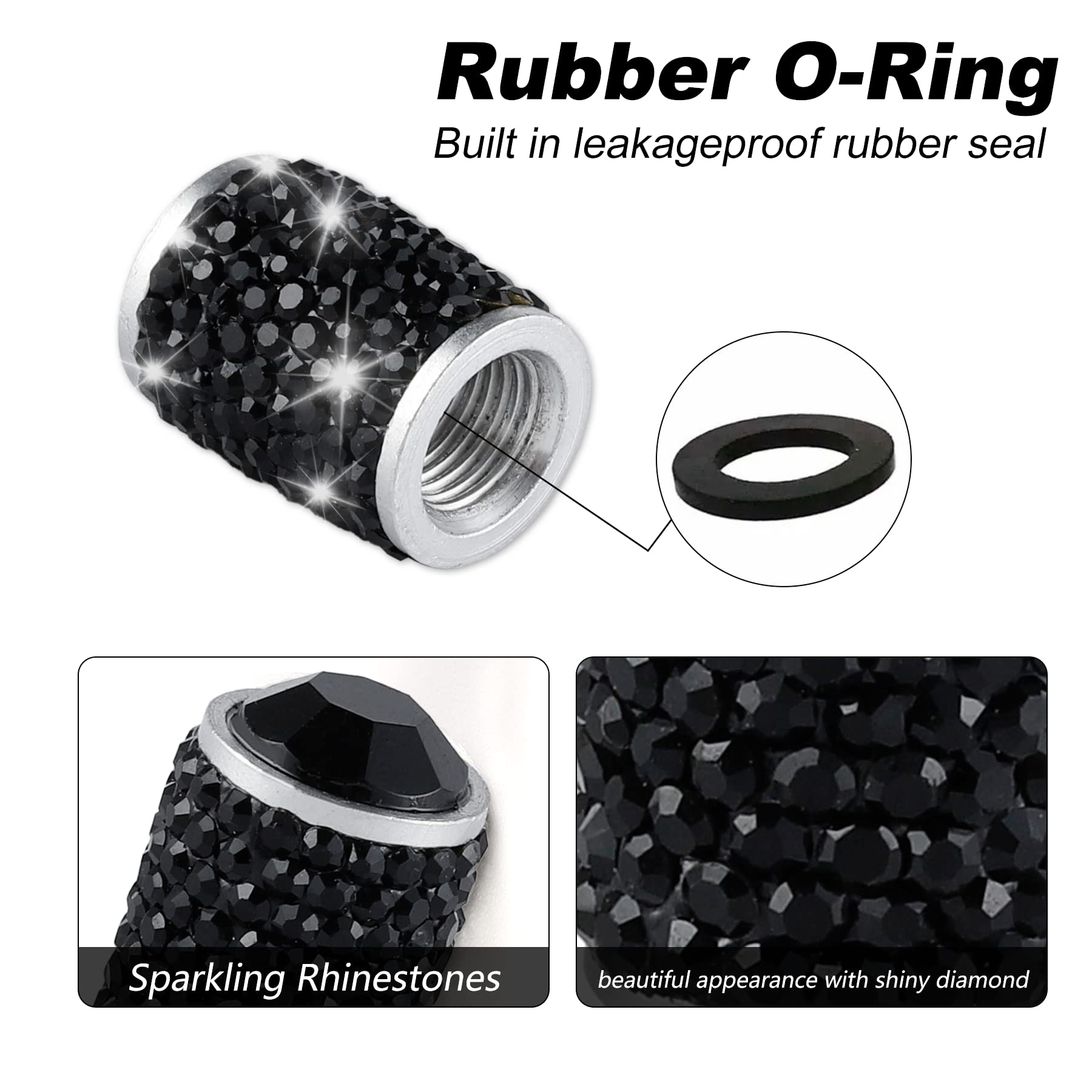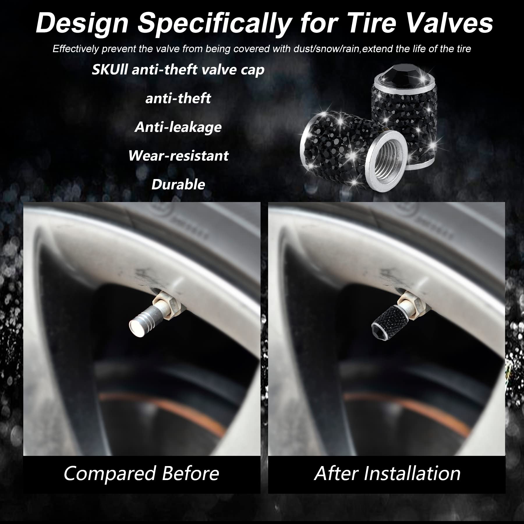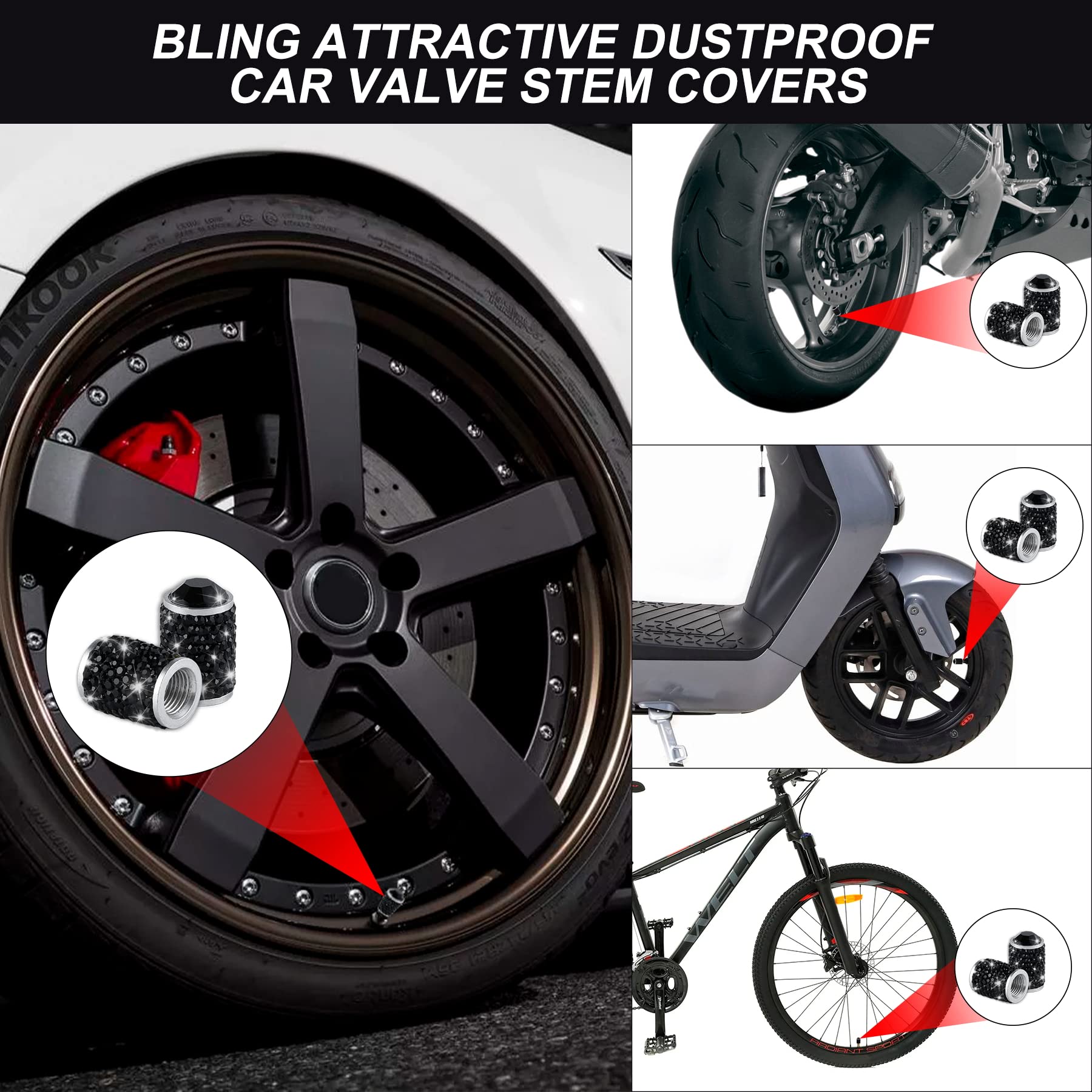 Sparkling Rhinestones Design: Our valve stem caps designed with Sparkling Rhinestones material, give your car a unique LUXURY look, also a nice gift for your families and friends.