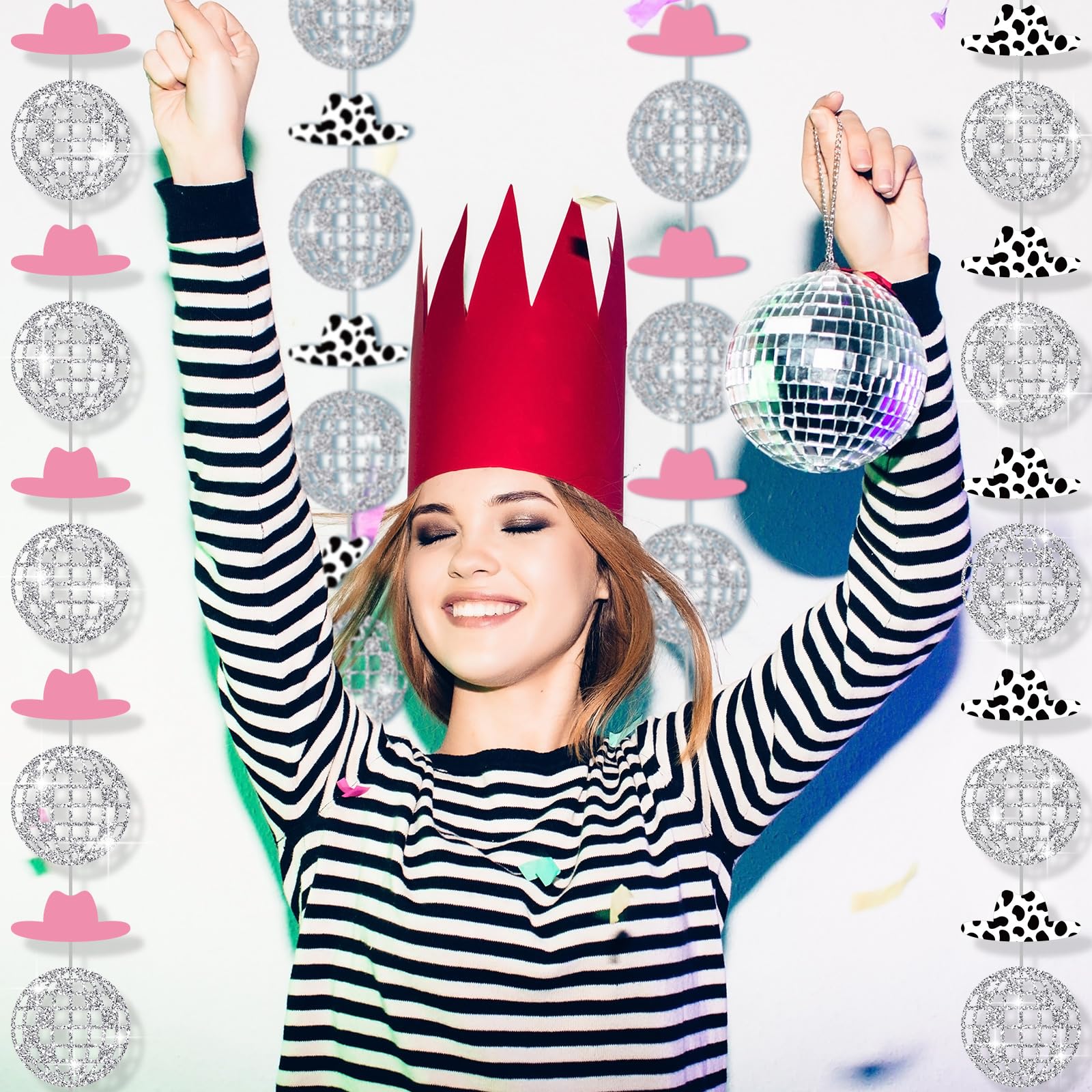 Innovative and Appealing Design: our cowgirl party hanging streamers boast a refreshing design; The creative combination of pink hats and silver disco balls is both innovative and captivating, guaranteed to draw attention and liven up any party ambiance