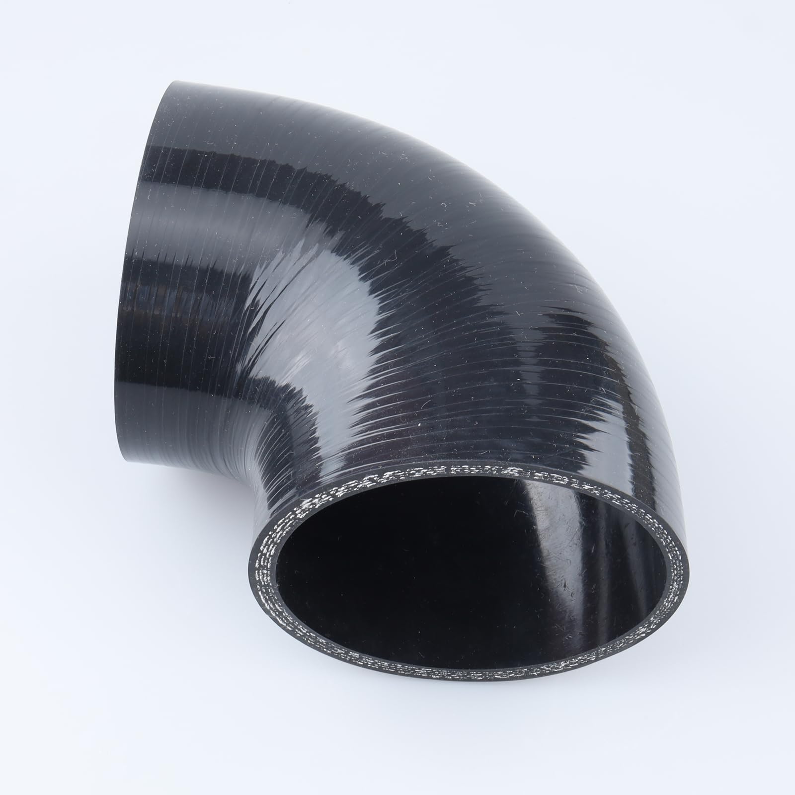 High Temperature 4-Ply Reinforced 90 Degree Elbow Coupler Silicone Hose, knitted premium polyester fabric with high temperature silicone rubber, for which meet or exceed SAEJ20 Standard and is engineered for extreme temperature and various pressure ranges where high performance levels are required. The Silicone Hose is commonly used for joining two hard pipes while reducing the possibility of connections coming apart or having your hard pipes or other equipment break. The silicone hoses are used by professionals in industries such as high performance racing vehicles, commercial truck and bus, Marine, agricultural and off highway vehicles, food and beverage, and general manufacturing industries. Temperature Range: -76F to 374F (-60C to 190C). Silicone hose is compatible with water or anti-freeze such as coolant. Silicone hose is not compatible with fuel or oil.