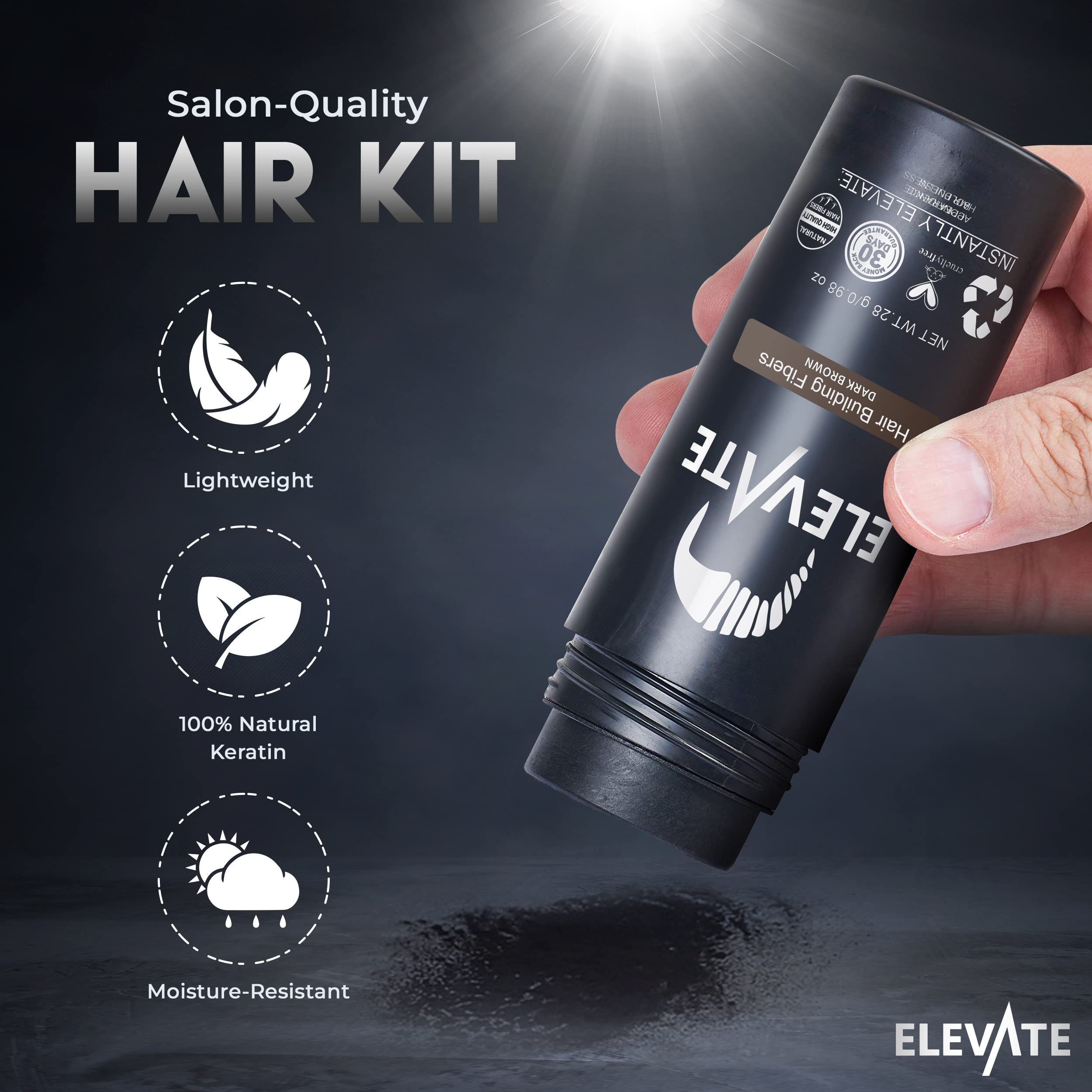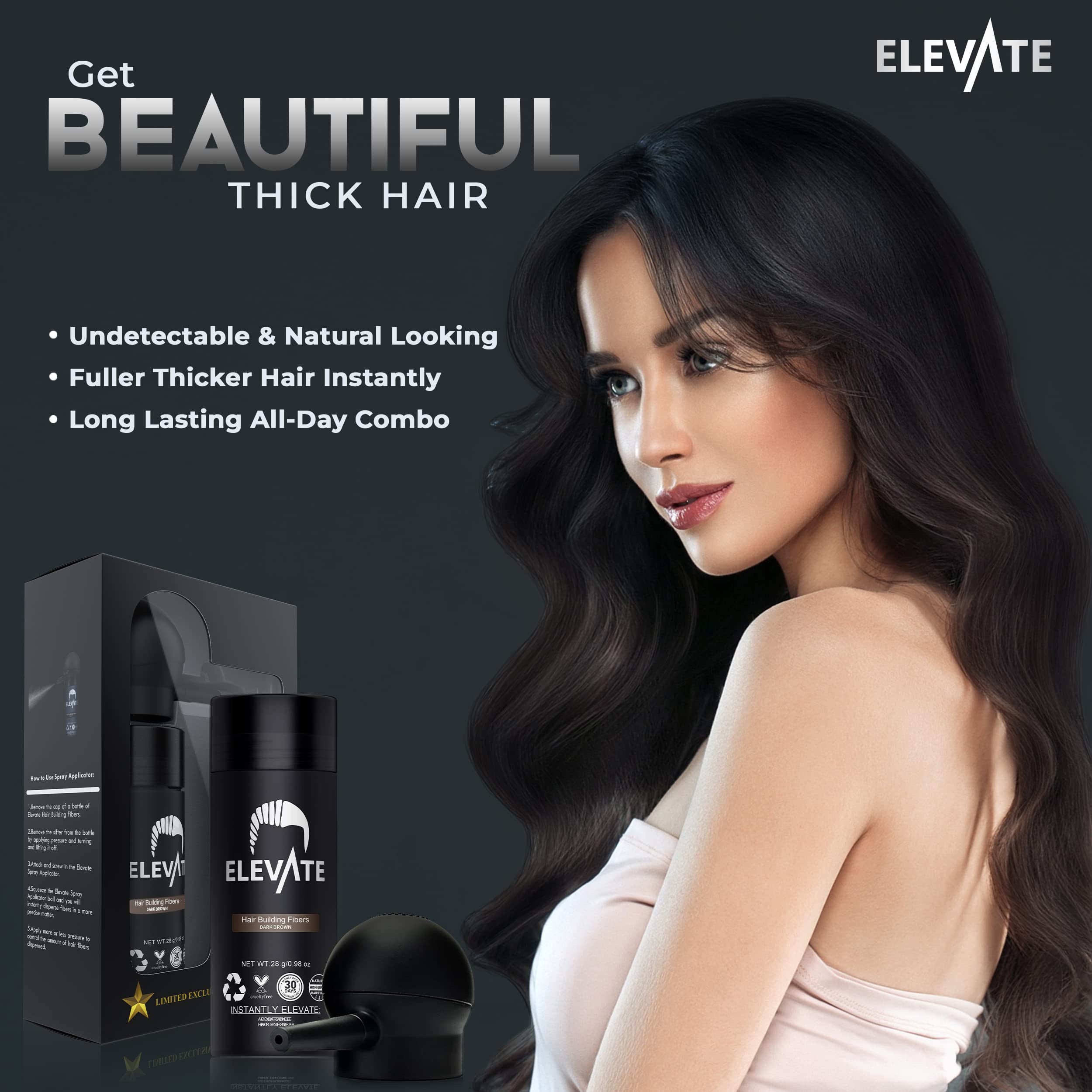 INSTANTLY THICKER, FULLER-LOOKING HAIR IN SECONDS: Achieve the appearance of thicker, voluminous hair instantly with the ELEVATE Hair Perfecting 2-in-1 Kit. Our 100% natural keratin hair fibers bond seamlessly to your strands, while the spray applicator ensures even, controlled coverage for a natural, undetectable finish.