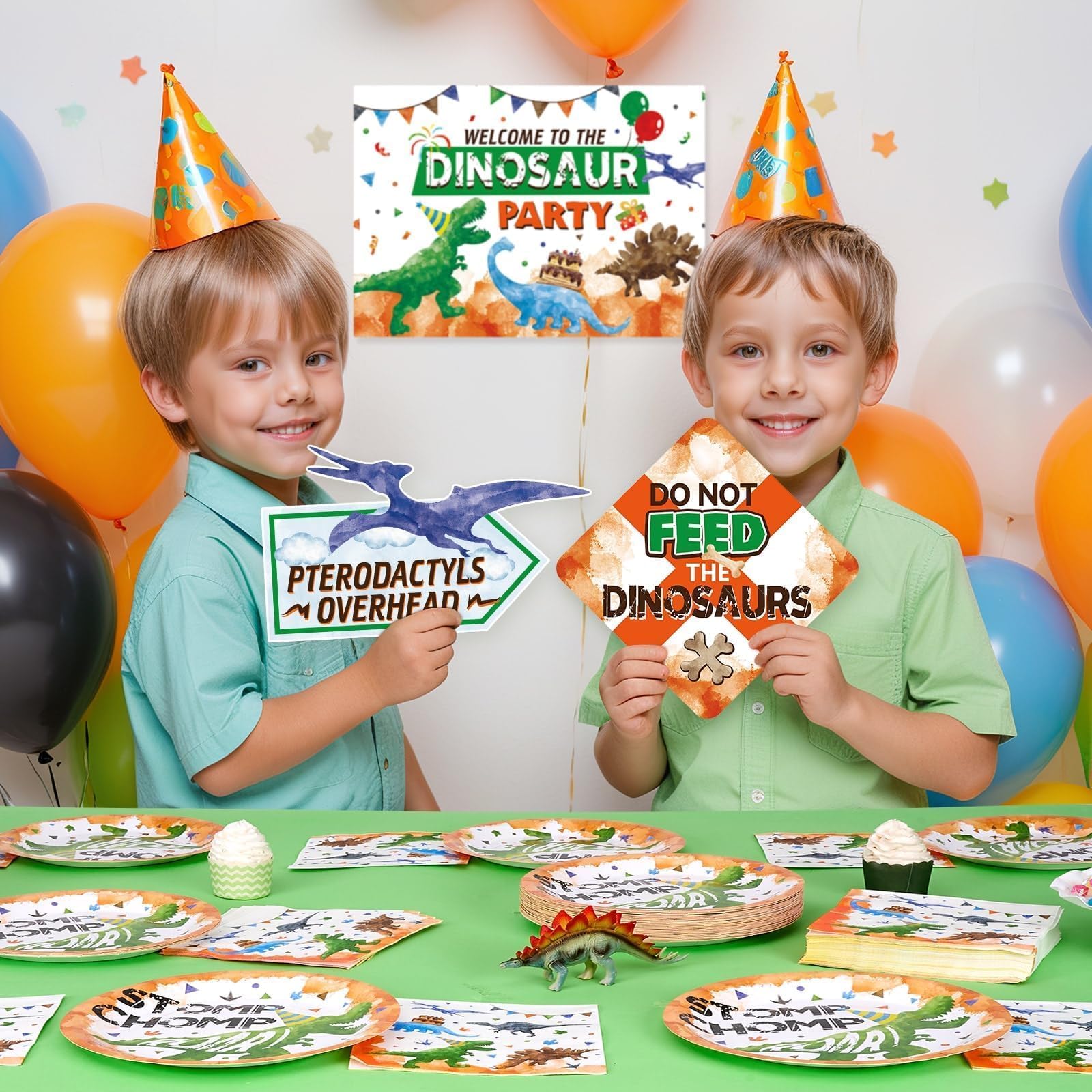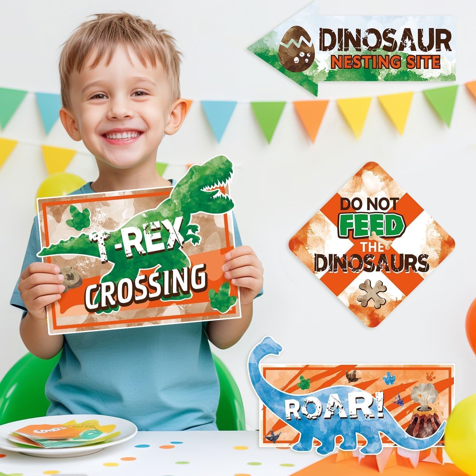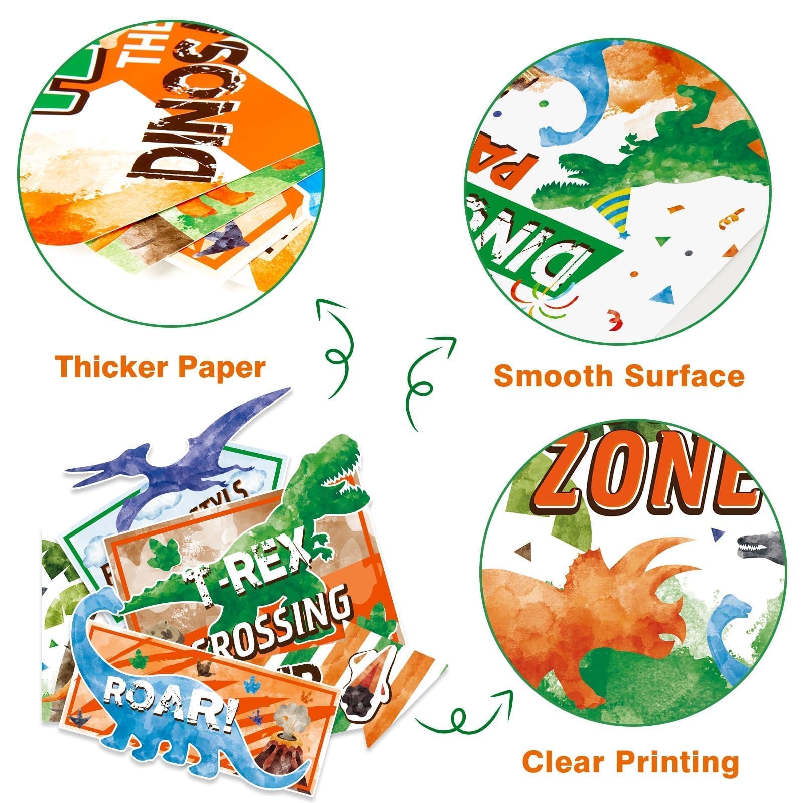 【RELIABLE MATERIAL】 - The funny dinosaur sign decorations for boys are made of high-quality cardboard, which is sturdy and durable while ensuring the clarity and brightness of the patterns. They are light, portable and easy to clean after the party, reducing the burden on your party experience