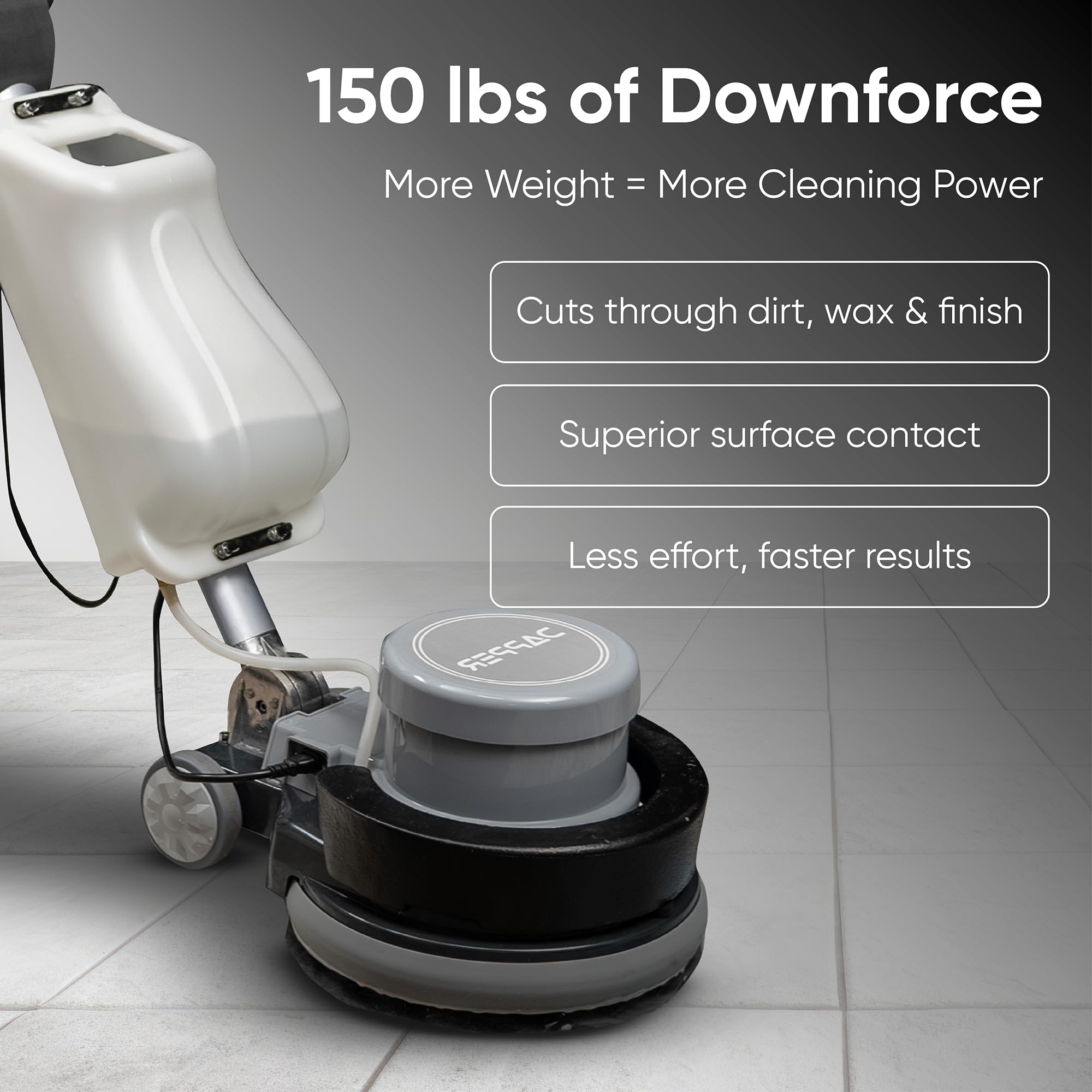 Heavy-Duty Weighted Design – 150 lbs of downforce delivers superior floor contact, cutting through stubborn dirt, wax, and finish with less effort. Perfect for commercial and industrial jobs.