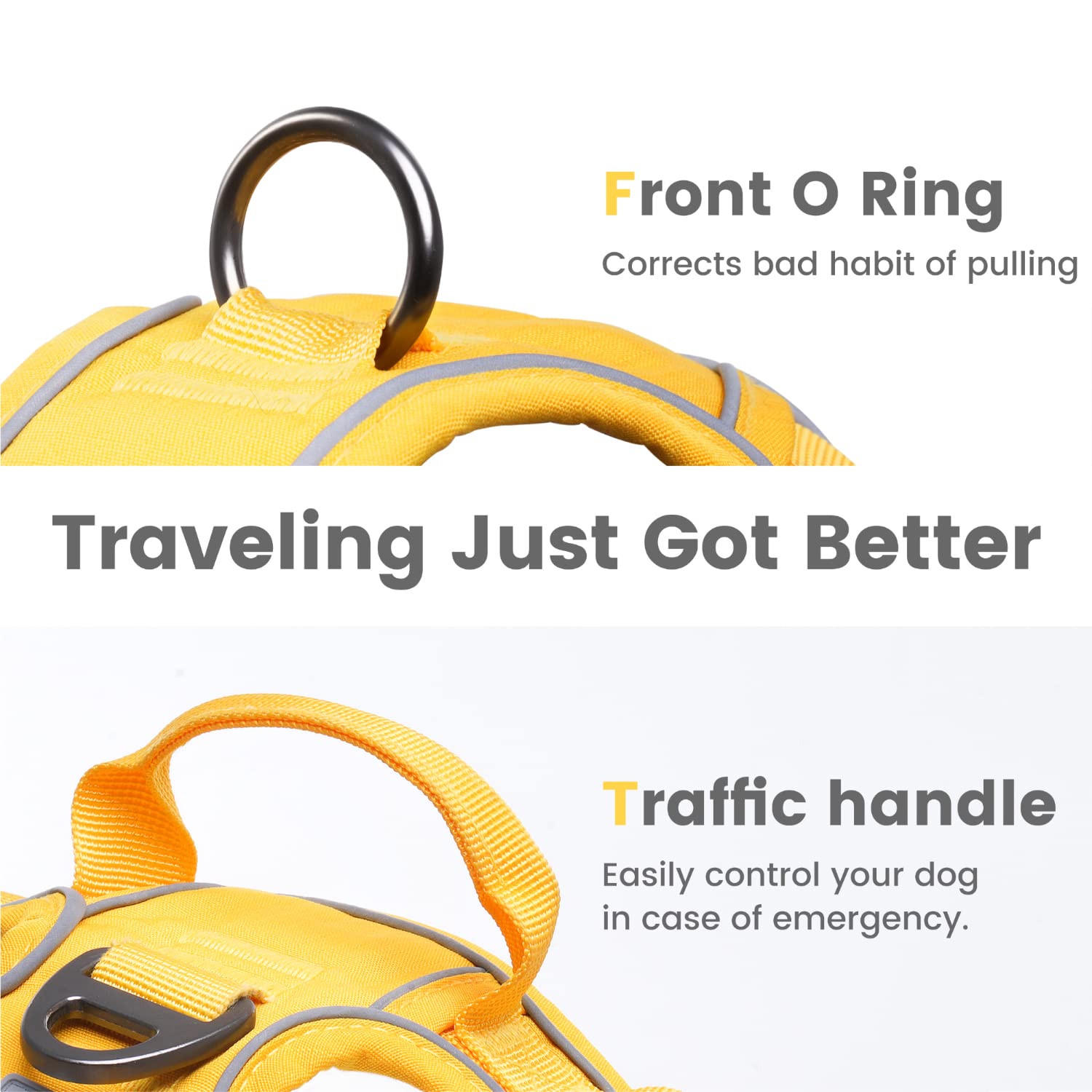 ๐๐ซ๐๐ฏ๐๐ฅ ๐๐ฅ๐๐ ๐๐ง๐ญ๐ฅ๐ฒ: This no pull dog harness can timely control pulling of your dog by its front O ring and traffic handle, and the harness for dog is perfect for daily walking or training.๐๐ฅ๐๐๐ฌ๐ ๐ง๐จ๐ญ๐ ๐ญ๐ก๐๐ญ ๐ญ๐ก๐ ๐๐-๐ฌ๐ข๐ณ๐ ๐๐จ๐ ๐ก๐๐ซ๐ง๐๐ฌ๐ฌ ๐๐จ๐๐ฌ๐ง'๐ญ ๐ข๐ง๐๐ฅ๐ฎ๐๐ ๐ ๐ซ๐ข๐ง๐ ๐ฌ.