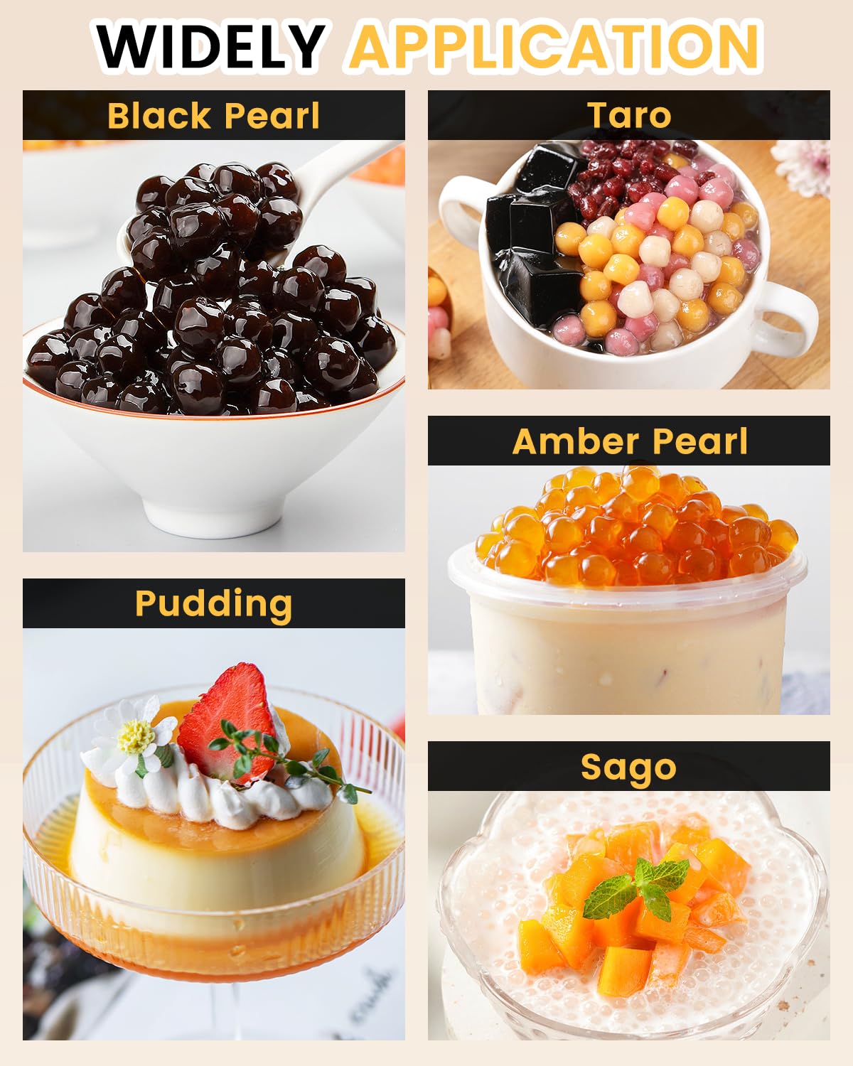 【High Efficiency】It is time saving that pearls are boiled by 900W power. It only costs you 50 minutes (boil for 25 minutes and stew for 25 minutes) to get a pot of boiled pearls. The amount of Pearl/Tapioca/Boba/Sago/Pudding it can cook at one time is 0.9 kg.