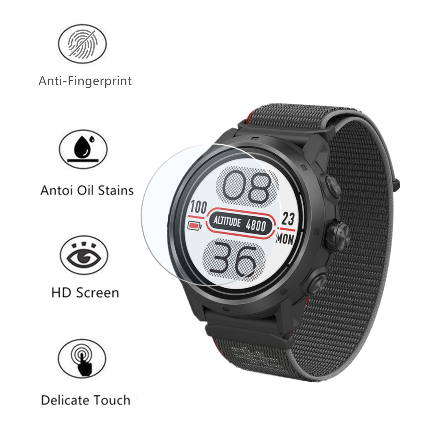 【Compatible Model】Include 3 Pack Tempered Glass Screen Protector, Compatible for PACE 4 / PACE 3 / PACE 2 / APEX 2 / APEX 2 Pro 【2.5D and 9H】Made from the 2.5D Curved-Edge Design,Oleophobic coating technology treatment, surface smooth. 9H Hardness can effectively protect your Watch from unwanted scuffs and scratches by knife, keys and some other hard substances. 【HD】HD Clear,maximum resolution which keeps the bright and colorful image quality. 【Sensitive touch response】Real touch sensitivity for a natural feel that provides flawless touch screen accuracy 【Easy to install】Adopt a typical "static cling" screen protector, easy installation.Package comes with installation tools, please follow the steps label of the protective film to install.