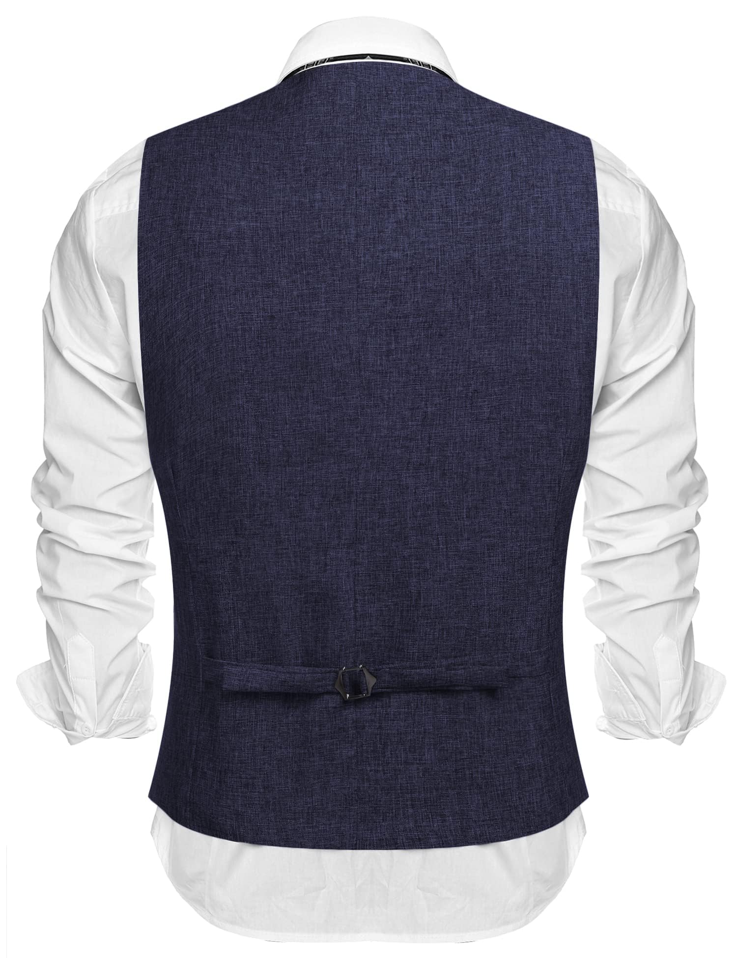 Business Modern Vest Design--- Leisure simply style suit vest beautifully cut, excellent craftmanship, designed with 2 front pockets,1 chest pocket, 4 button front closure, adjustable back strap offers you more accurate fit.
