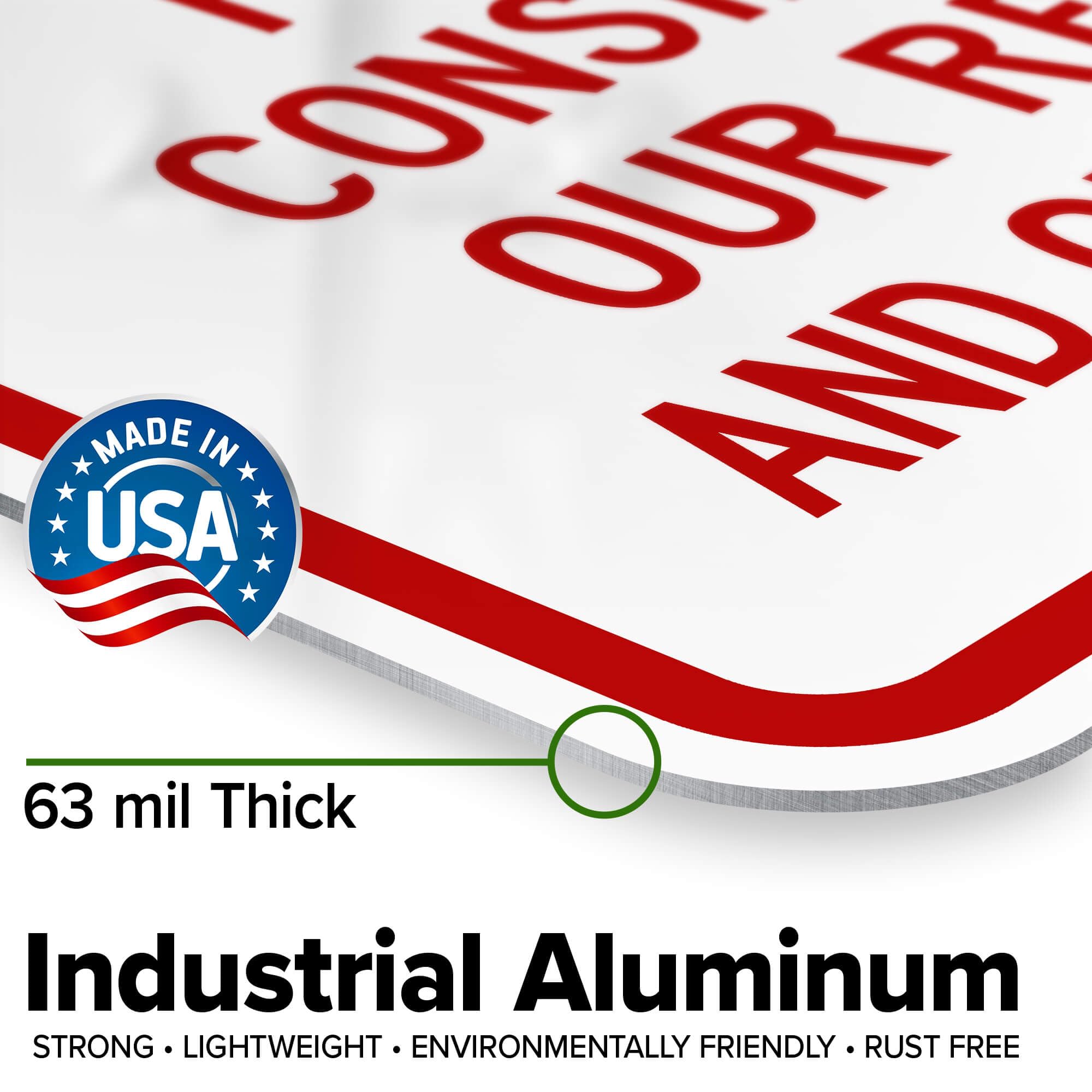 Durable and Long-Lasting Quality - Crafted from premium rust-free aluminum, our signs are built to last for years in both indoor and outdoor environments, maintaining their new look. Proudly made in the USA!