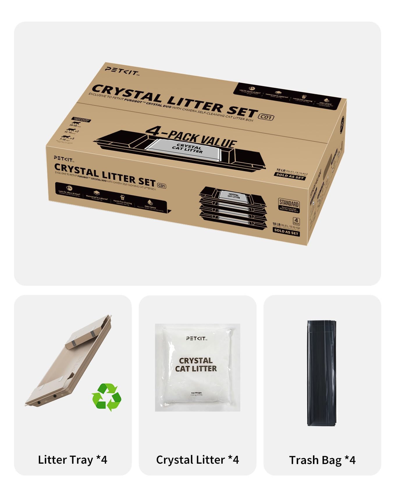 No shoveling, no stress: designed for the PETKIT Purobot Crystal Duo automatic cat litter tray. Simply insert and no cleaning required for weeks - ideal for busy cat owners.