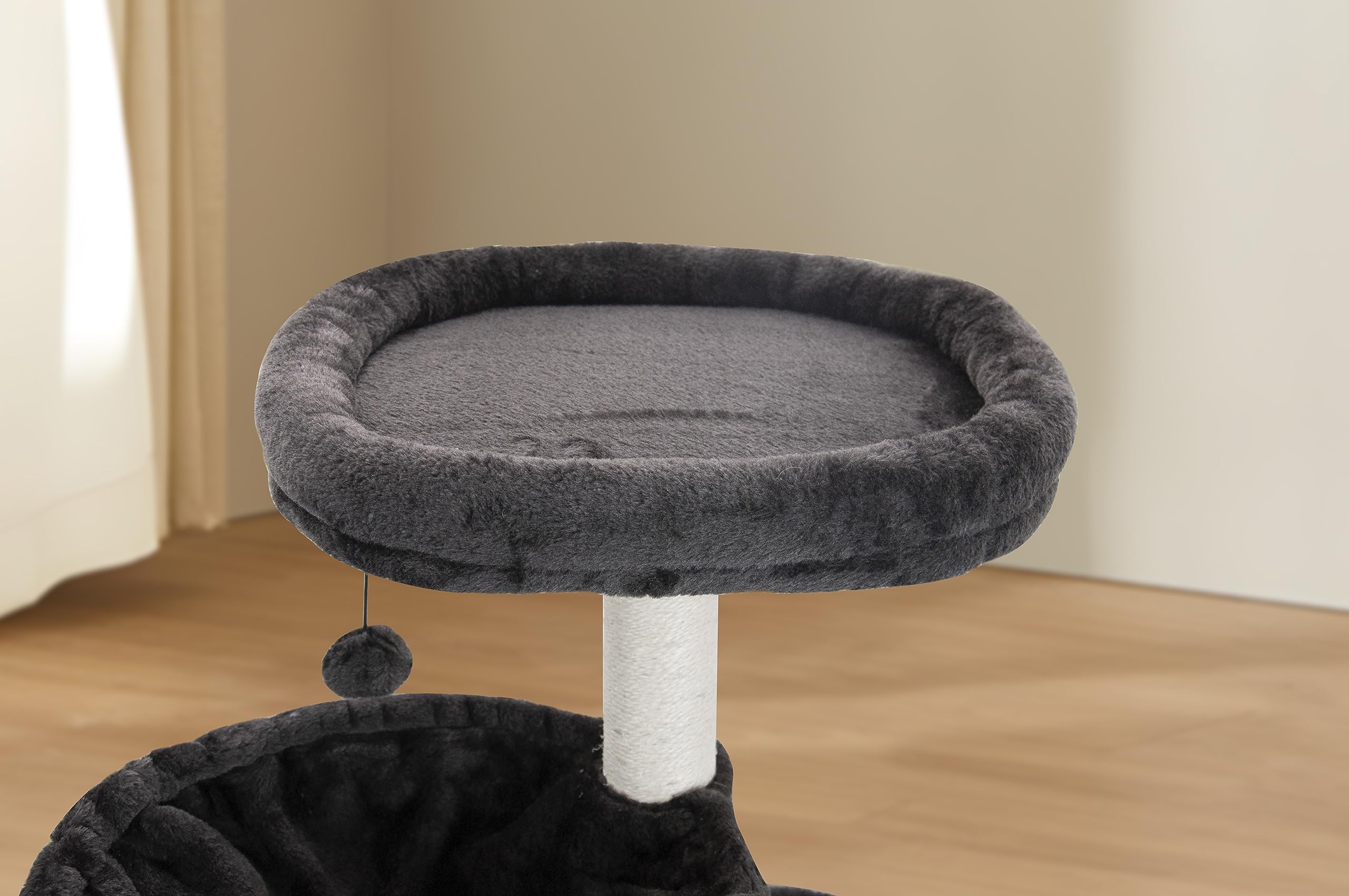 The big condo can provide cats sleeping place as well as observe place. The round shape soft platform can let cats observe like a queen and look view outside of the window.