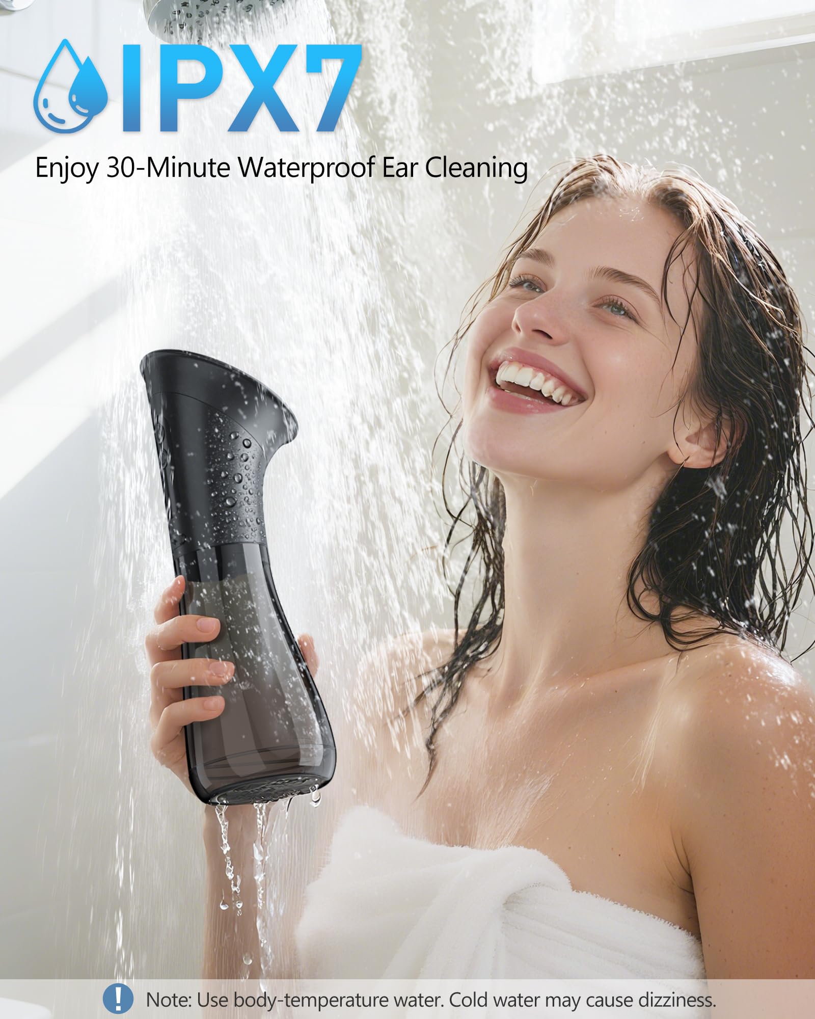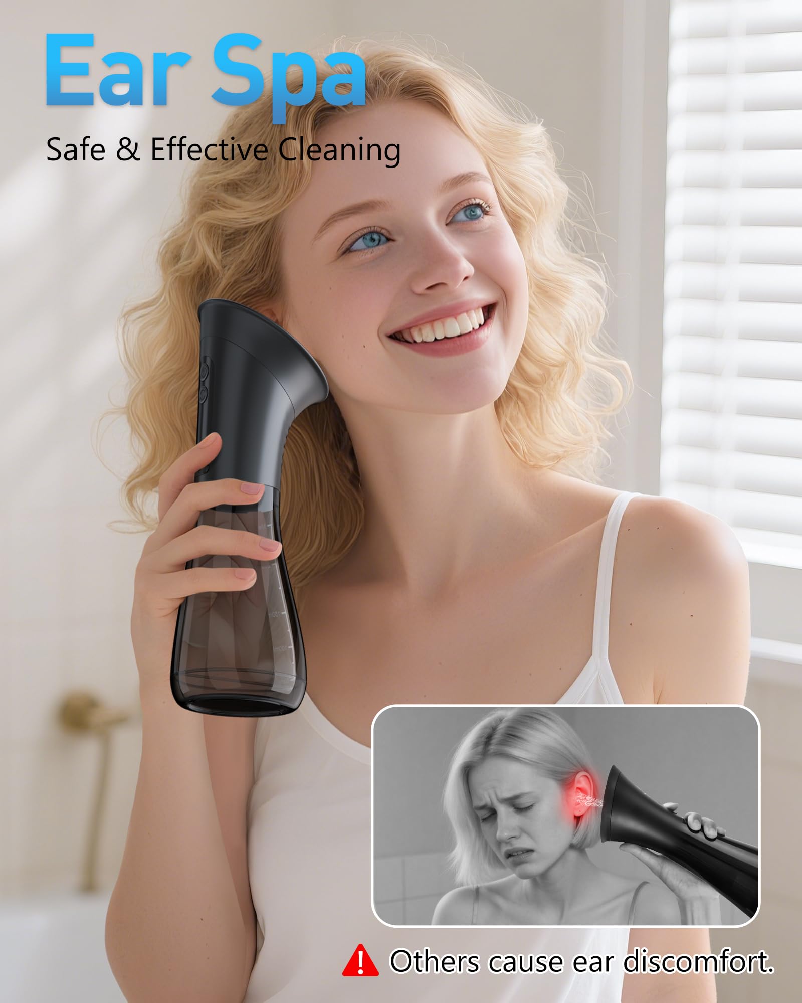 Easy to use: Integrated dual-tank design separates clean and dirty water, automatically returning wastewater to the dirty tank. Frees up your hands. Premium silicone ear cover fits all ears and prevents splashes. Extra-large 500ml total water tank for efficient ear wax removal with just one fill.