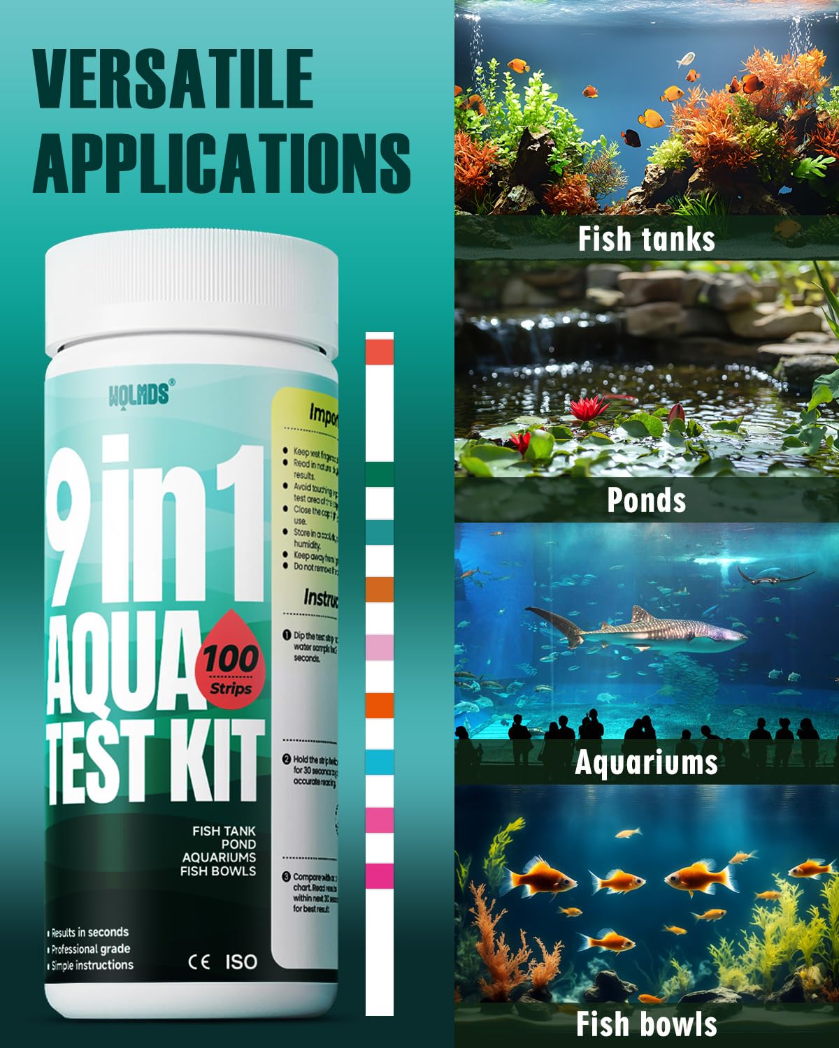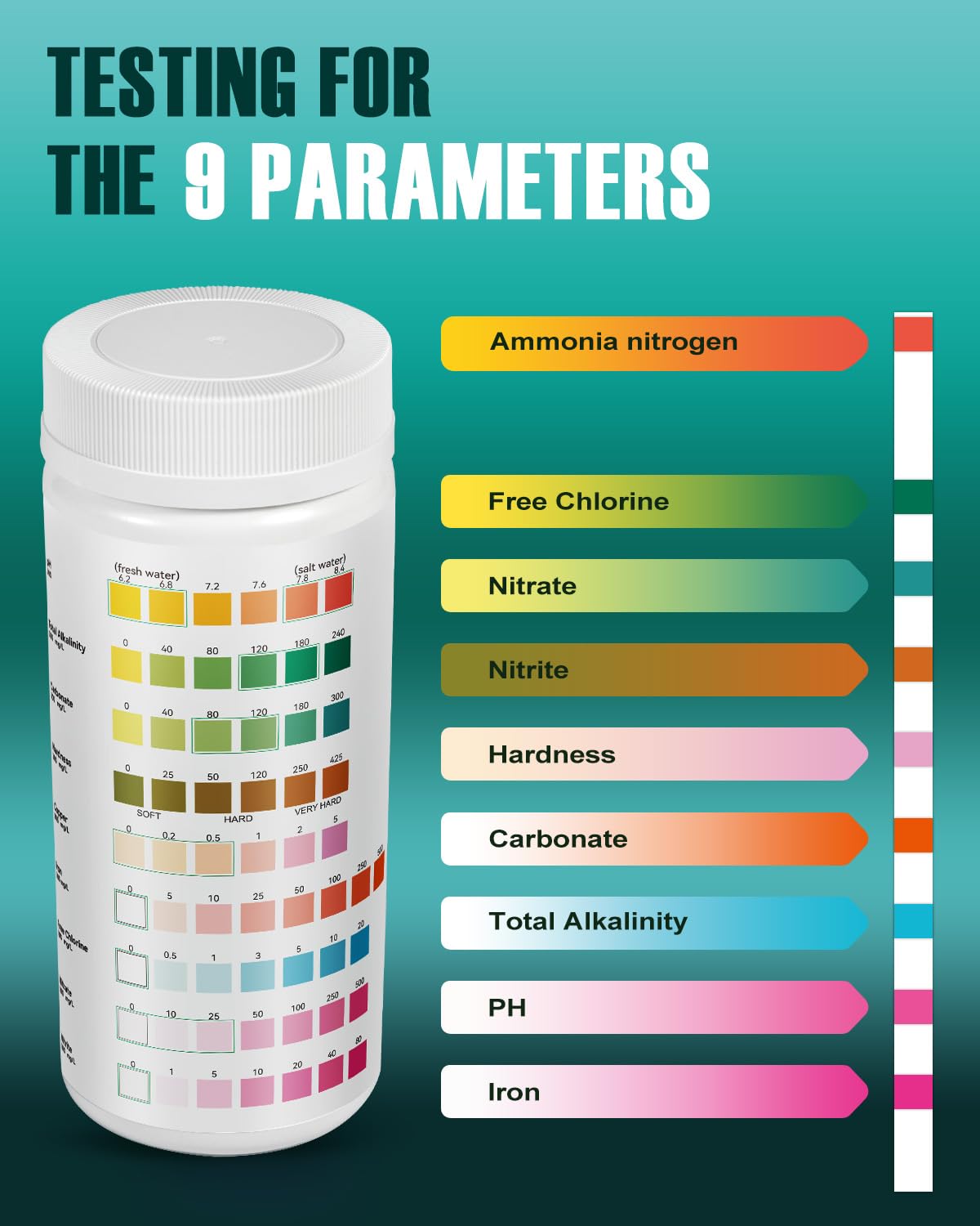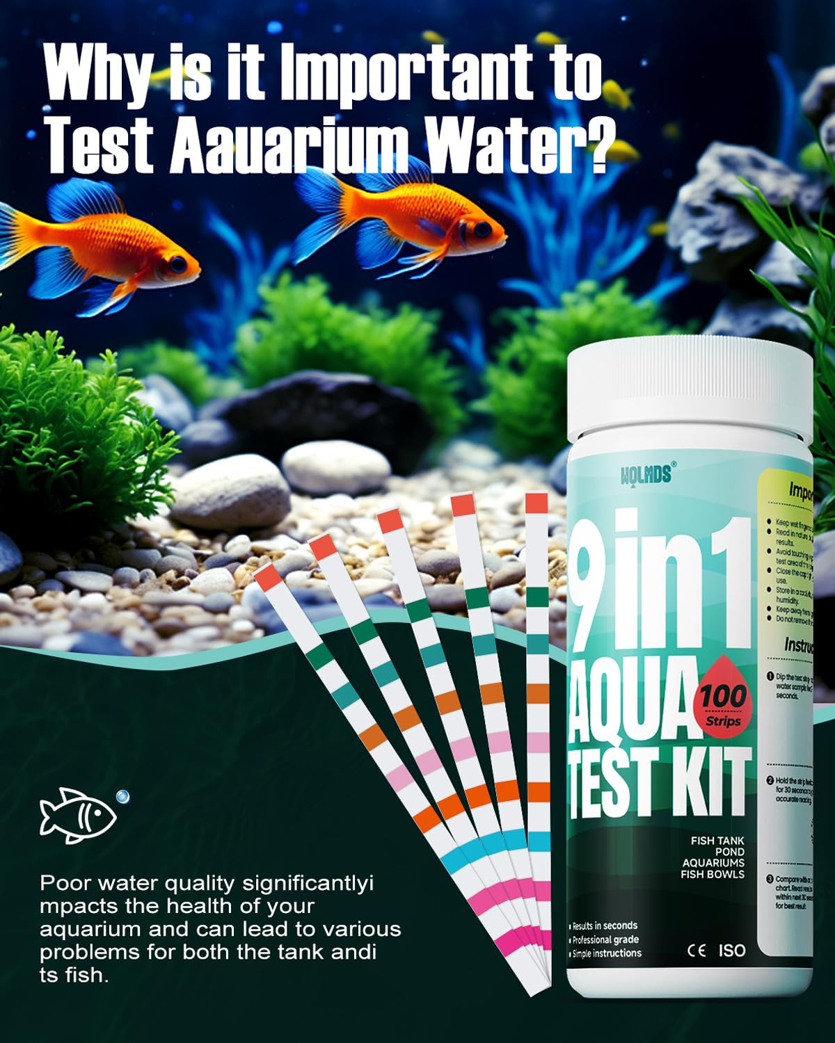 Comprehensive 9-in-1 Aquarium Test Kit for Freshwater and Saltwater: This aquarium test kit offers an all-in-one solution for monitoring water quality in freshwater aquariums, saltwater tanks, and ponds. It measures pH, ammonia, nitrate, chlorine, and more, ensuring your aquatic pets thrive in a balanced environment.
