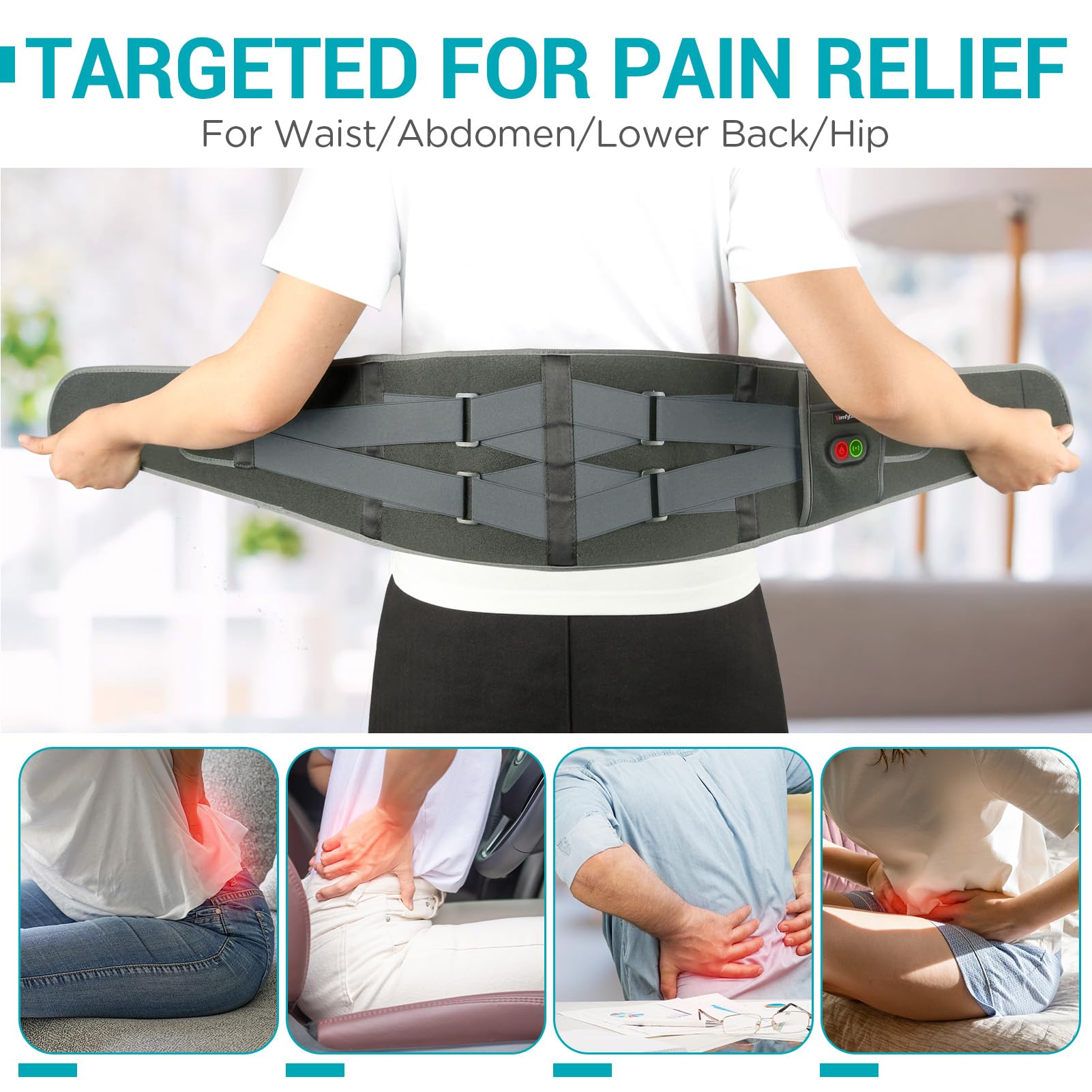 Aim at Pain Relief: Heating pad for lower back provides heat therapy and soothing vibration massage to relieve hip and waist pain, menstrual cramps, abdominal discomfort, stomach upset, leg arthritic, and muscle tension.