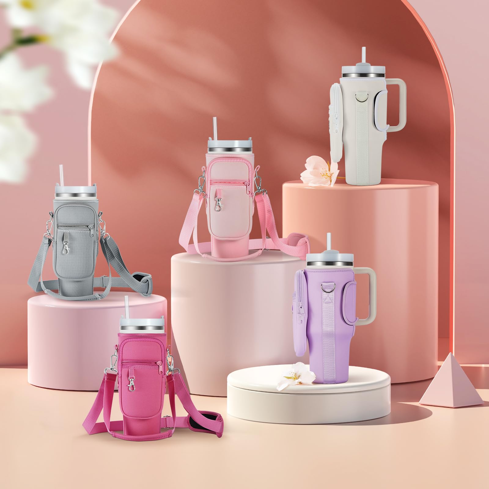 Accessories for Stanley Cup: This water bottle holder with strap is specially designed for Stanley Quencher H2.0 40/30oz and Stanley Adventure Quencher 40/30oz, Stanley Quencher ProTour 40/30oz,this Carrier bag with strap fits your Stanley dupe like a glove, could free your hands, offering superior protection against drops and silence when setting down.