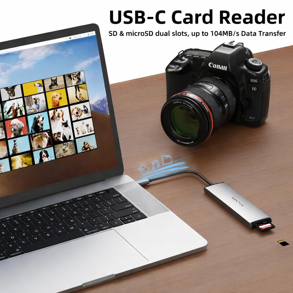 【Super-Fast Data Transfer】Two high speed USB 3.0 ports and one USB-C port with data transfer speeds of up to 5 Gbps can transfer big files and pictures in seconds. The card reader slot allows you to access your SD/Micro SD memory card for pictures and video from your camera, drone, and action camera.