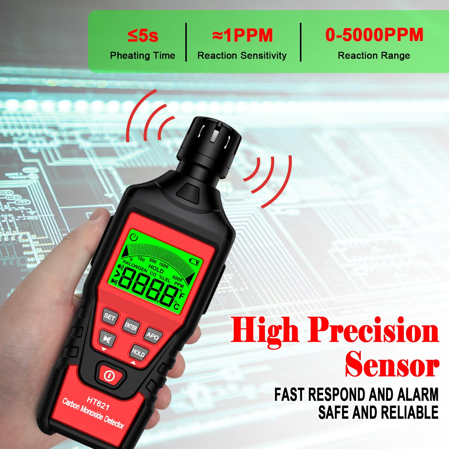 【Compact & Portable Design】Compact design, easy-to-understand interface, customers can operate the device with one hand. Without complicated instructions, simple to use. Non-slip texture and ABS material makes it easy to hold. This portable carbon monoxide detector helps you monitor changes in carbon monoxide levels in a variety of scenarios in real time without having to pay hundreds of dollars in testing fees for suspected carbon monoxide leaks. A carry bag is provided for storage.