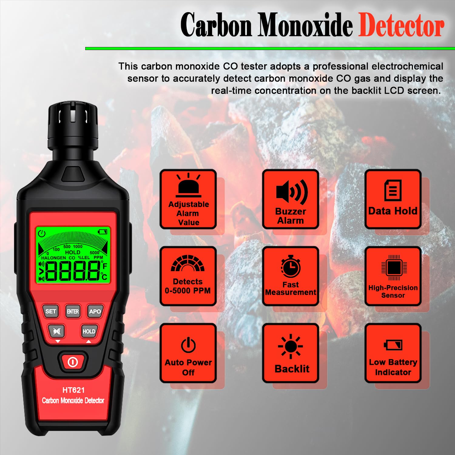 【Professional Electrochemical Sensor】This handheld carbon monoxide CO tester adopts a professional electrochemical sensor to accurately detect carbon monoxide CO gas and display the real-time concentration on the backlit LCD screen. Swiftly detects CO levels from 0-5000 ppm. It has an automatic calibration function to ensure accurate detection of CO gas and protect the safety of your family and property. It is a must-have tool for homeowners, drivers, campers, DIY-ers, tourists, etc.