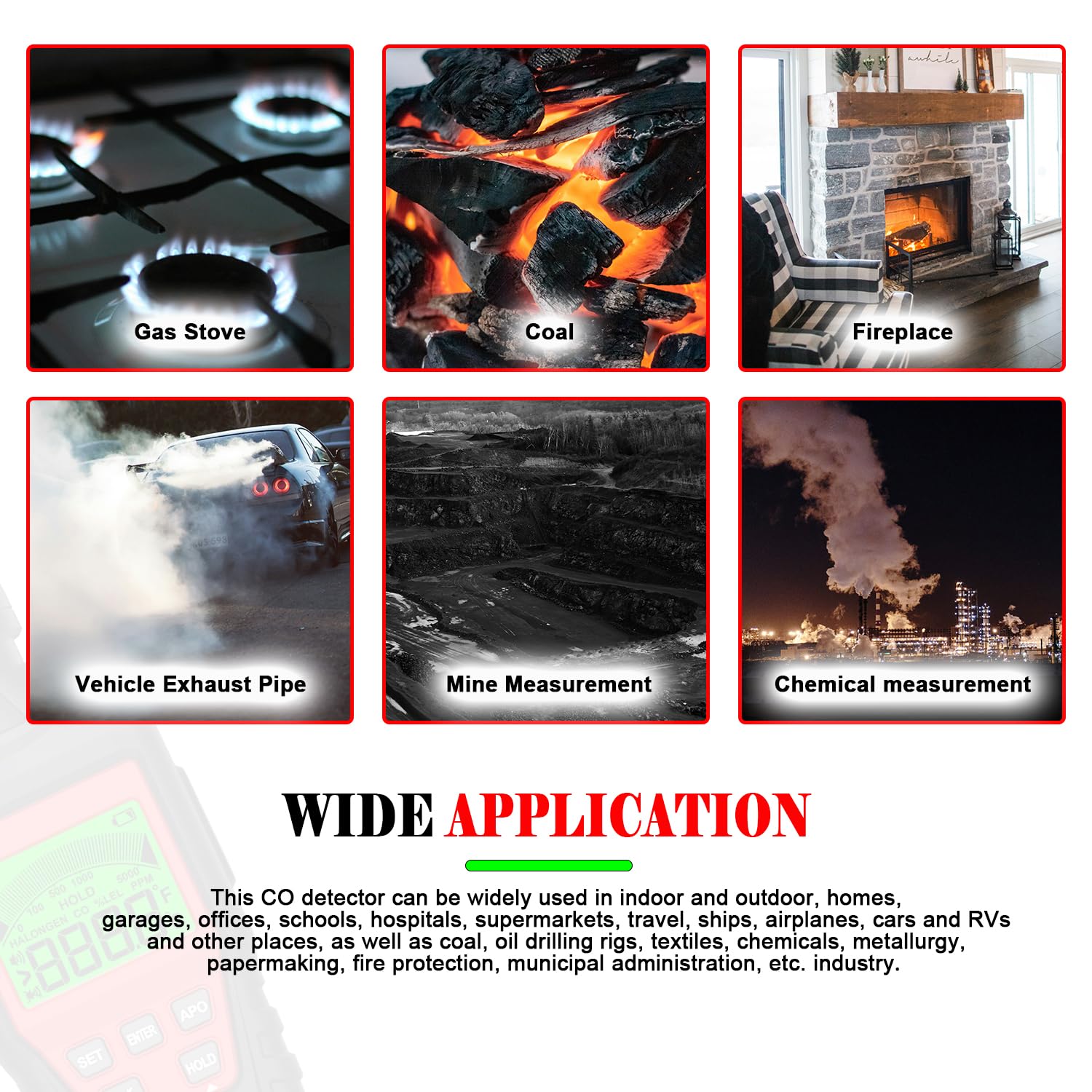 【Wide Application】The portable CO detector can be widely used in indoor and outdoor, homes, garages, offices, schools, hospitals, supermarkets, travel, ships, airplanes, cars and RVs and other places, as well as coal, oil drilling rigs, textiles, chemicals, metallurgy, papermaking , municipal administration, etc. industry.