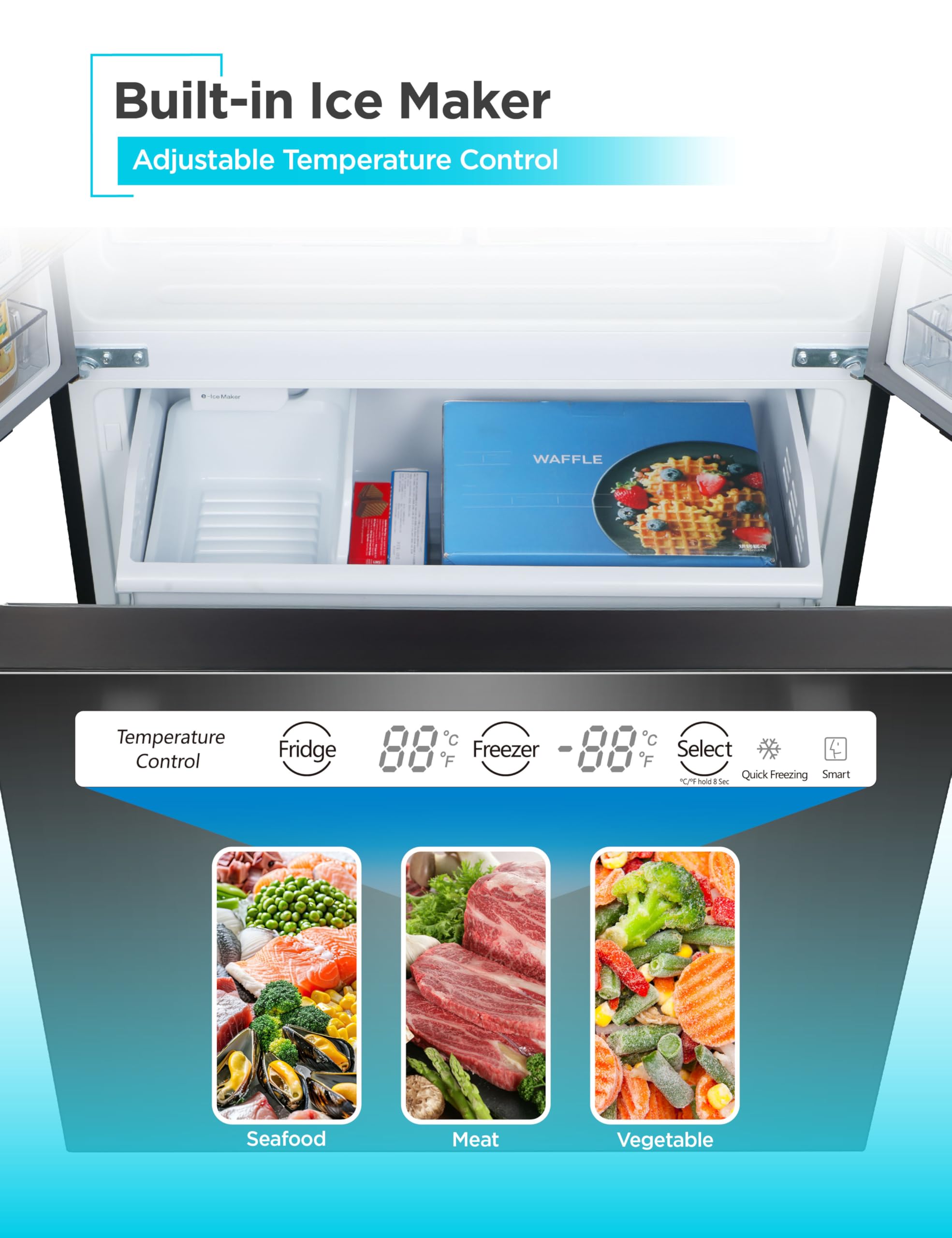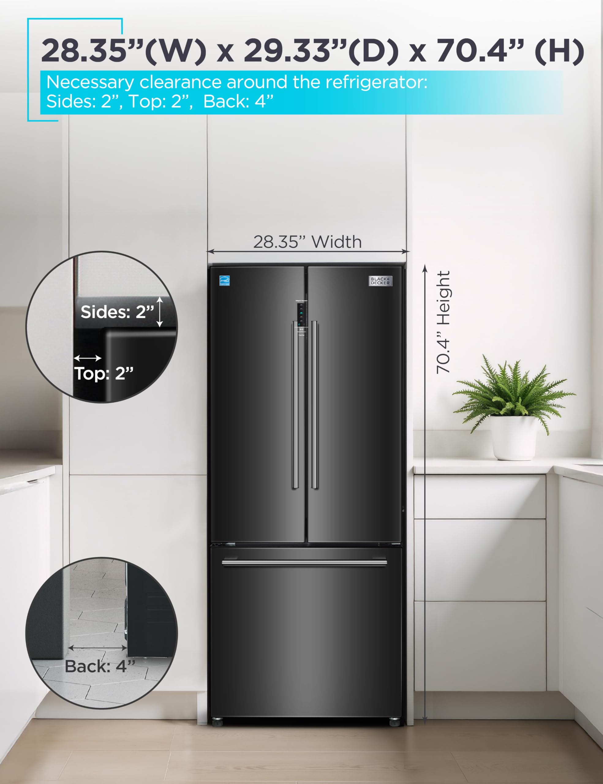 Spacious Organization: With full-width 11.15 cu. ft. fridge and 5.06 cu. ft. total freezer capacity, our French door fridge with freezer offers ample storage space and options for all your essentials