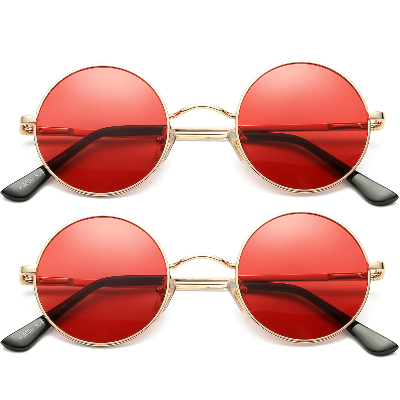 VINTAGE ROUND METAL FRAME ►Ergonomic design frame, a curved brow bar, reinforced metal hinge, adjustable nose pads, durable metal flexible spring hinges temples, classic design make these small round sunglasses for men and women more comfortable and durable while you are wearing.