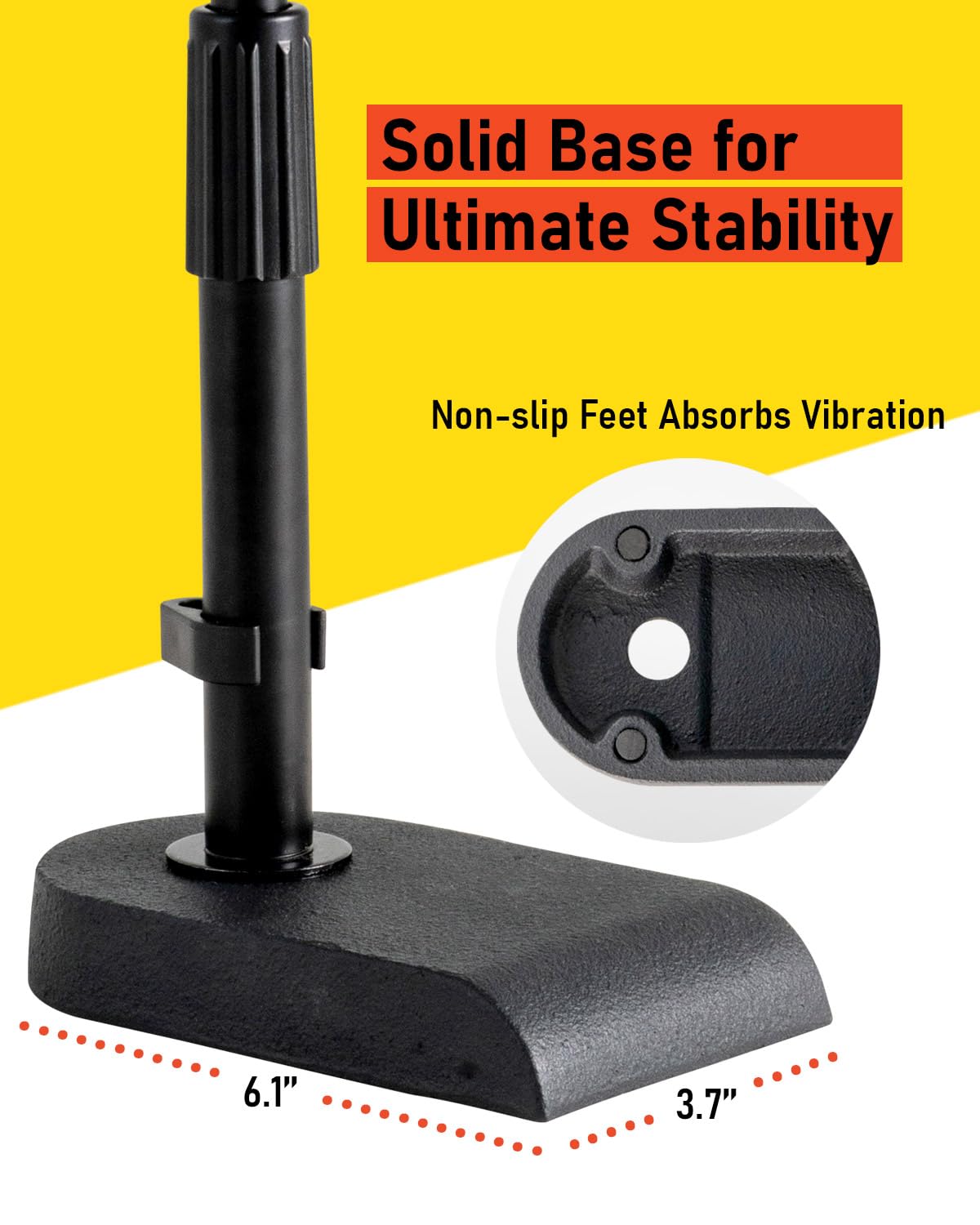 Solid Weighted Base - Features the heavy-duty die-cast base, which provides a precise balance and stability for kick drum and amp mic stand. It also features the heavy weighted powder coated black finish base, which is scratch-resistant. With our precise design, the well-made high-quality steel base could avoid collapsing. The base also comes with non-slip feet on the bottom to absorb vibration and achieve stability and balance.