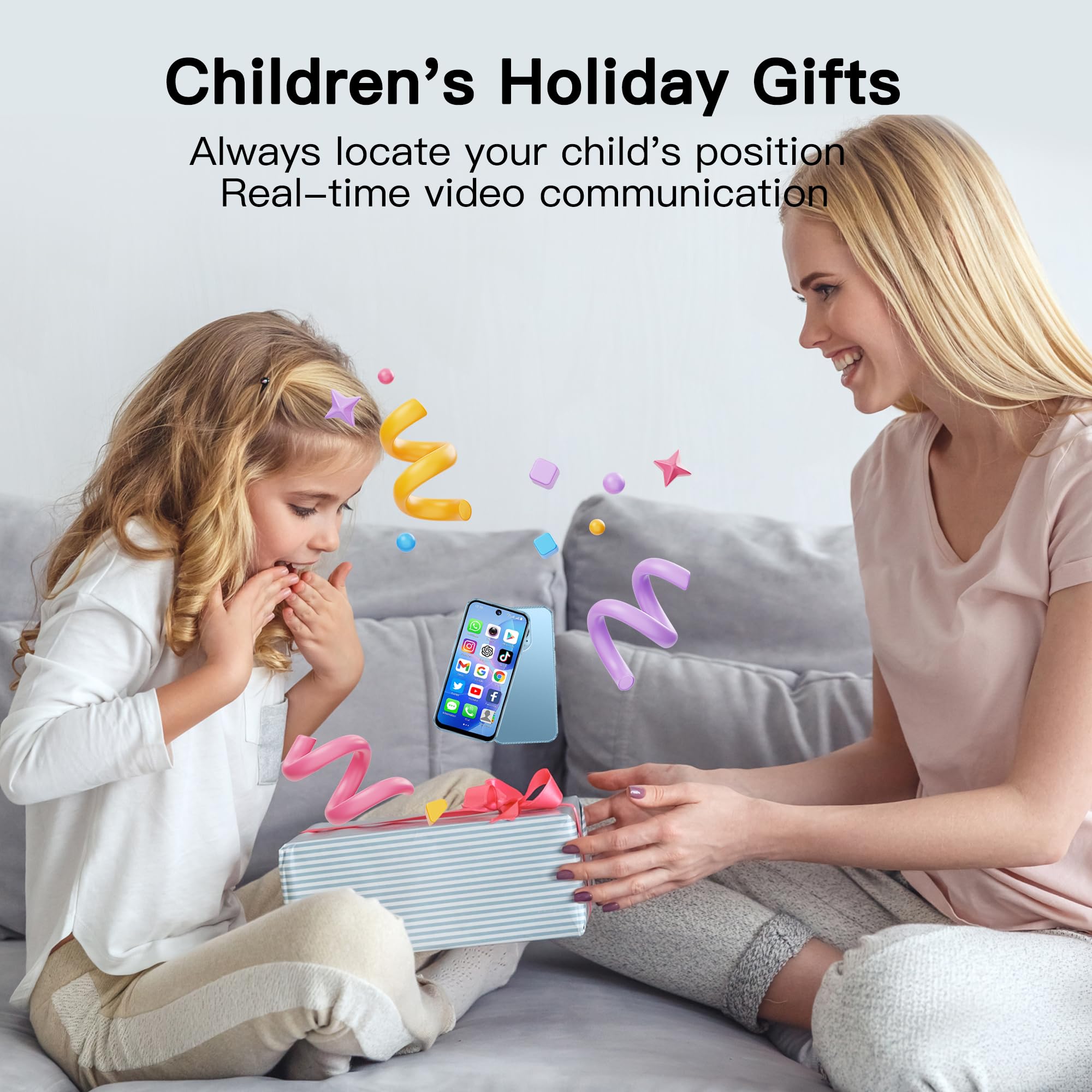 Dual-Camera Mini Phone: With a 2MP front camera and a 5MP rear camera, it clearly captures every precious moment in life. The face unlock feature allows kids to turn on the phone quickly without remembering passwords, providing greater peace of mind for privacy protection, and enabling zero-distance remote communication between kids and parents
