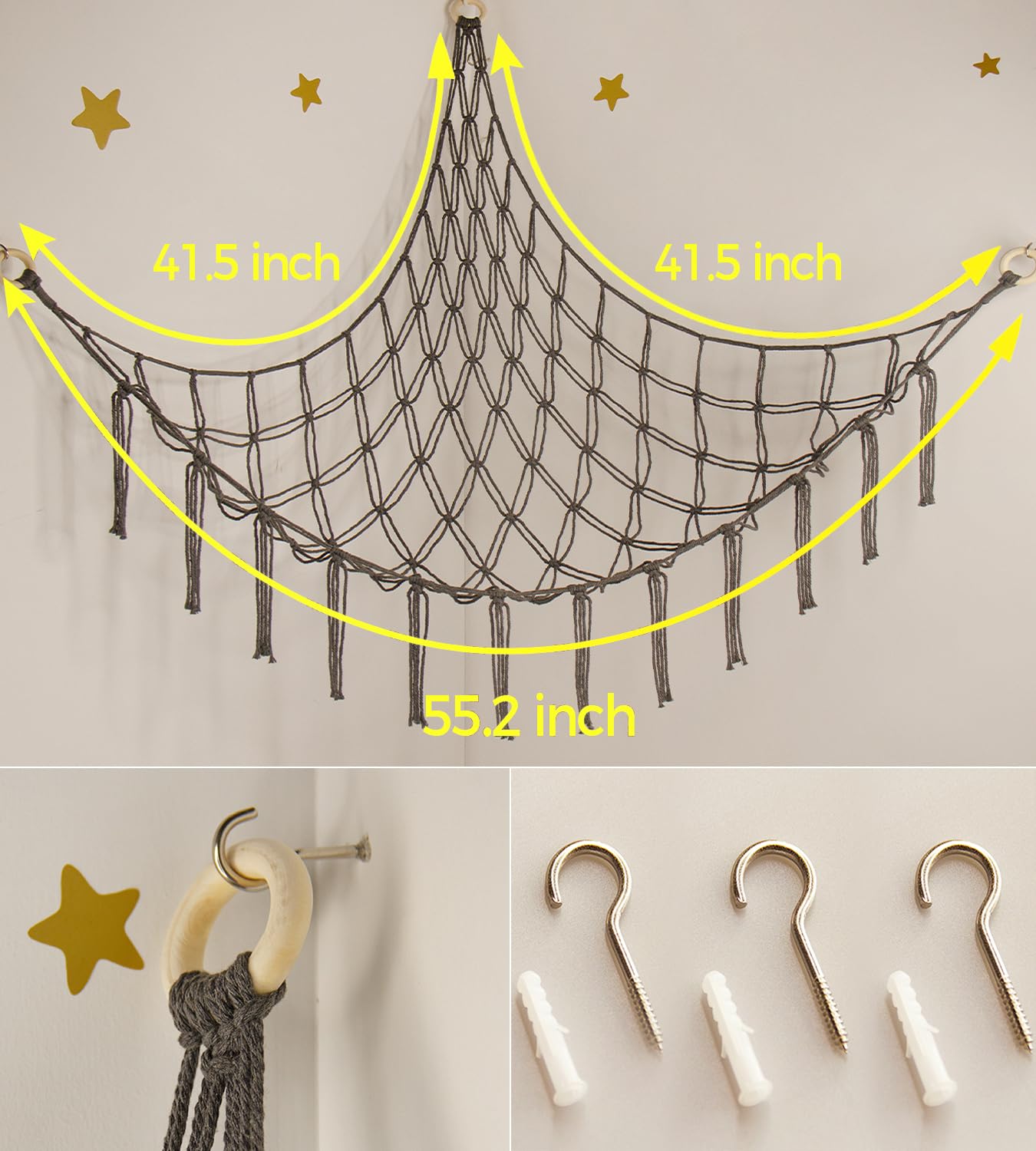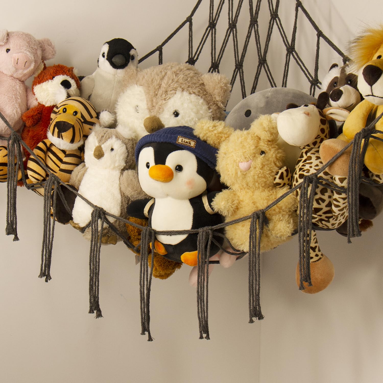 GREAT STUFFED ANIMAL NET:This toy hammock net is made of 100% premium cotton which is environmentally . The traditional handmade macrame rope is applied to the animal hammock which means the hanging net would not loosen or change its shape and ensures a longer durability.