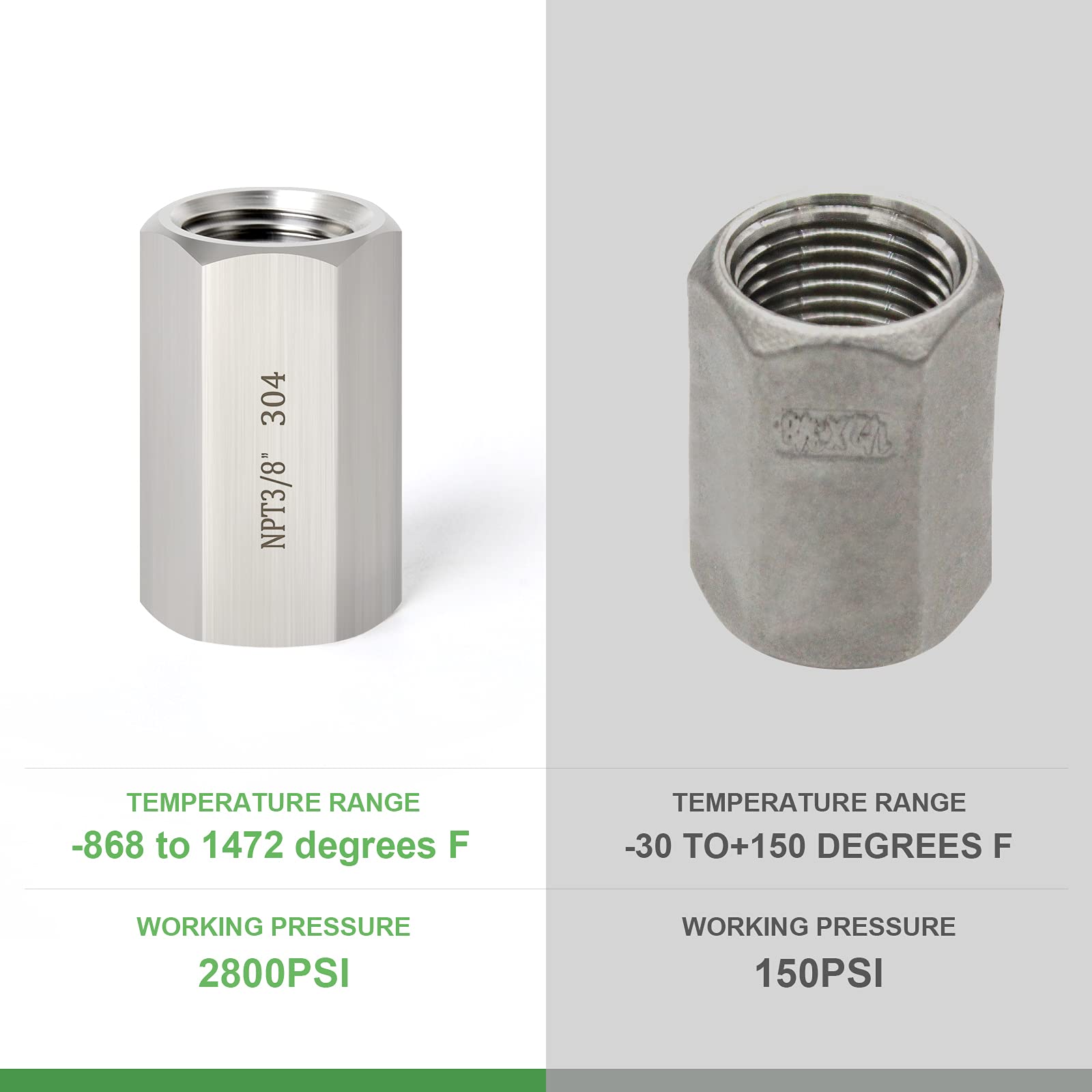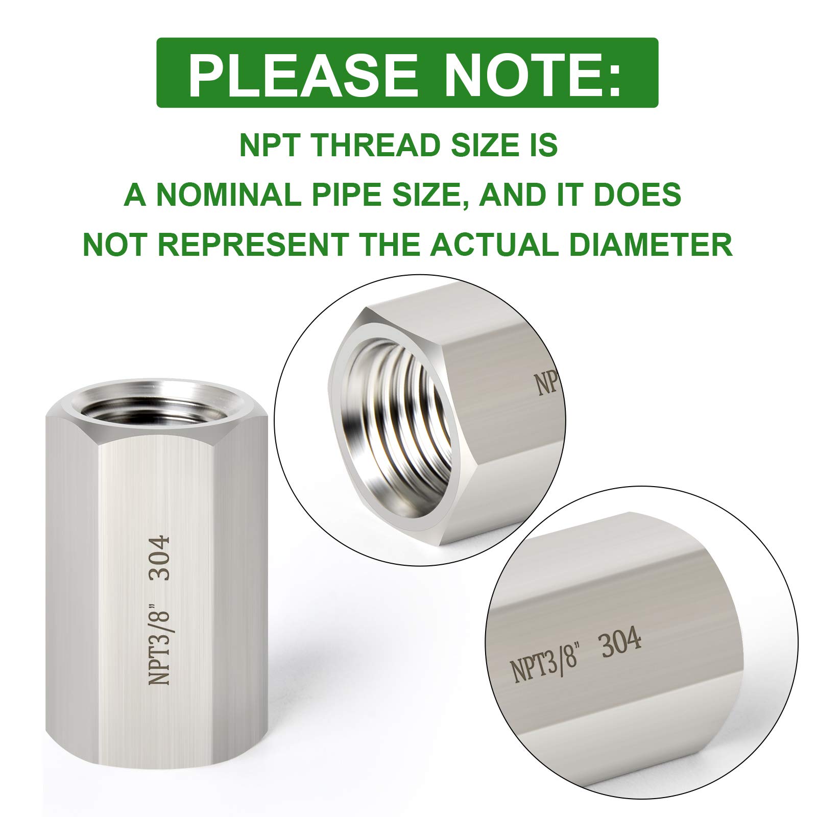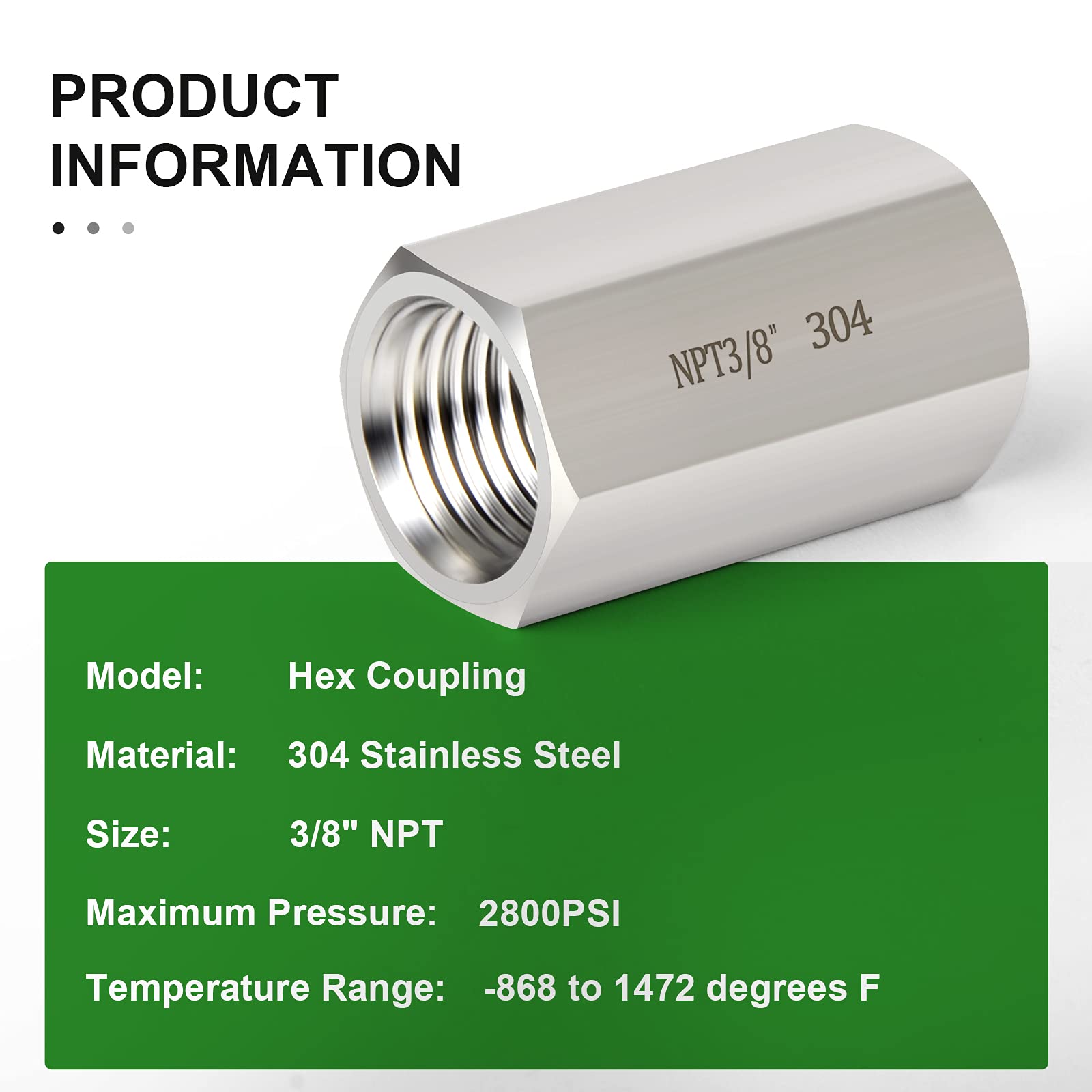 Product Type —— Coulping(3/8"Female NPT x 3/8"Female NPT),for industry connecting pipes or fittings with different end types,diameters,or materials,NPT thread size does not actual diameter,it is only nominal pipe size.