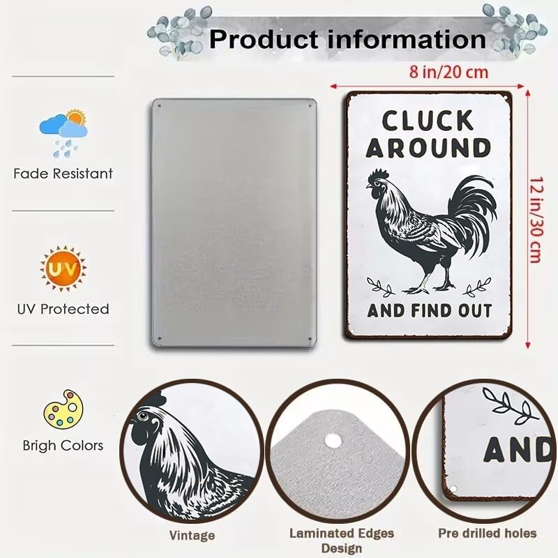 NOVELTY SIGN: This Funny Chicken Tin Sign Is Perfect For Decorating Your Home, Farmhouse, Chicken Coop, Kicthen, Garden Or Any Other Space. It Features A Vibrant And Eye-Catching Design That Will Surely Bring A Smile To Your Face And Add A Touch Of Humor To Your Decor.