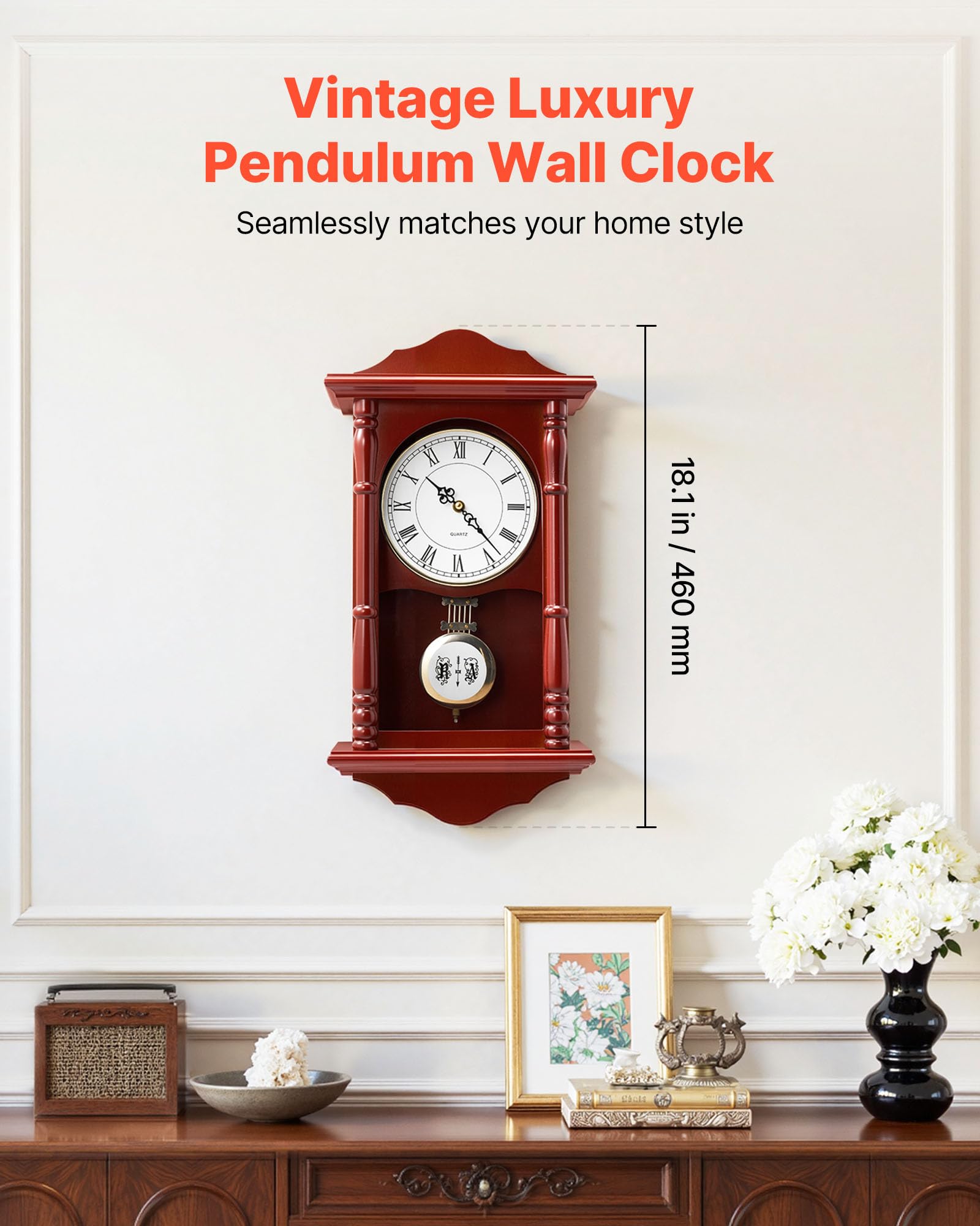 Elegant Design: VEVOR grandfather clock, with its classic design and 18 in (457.2 mm) height, blends ideally with different home styles, bringing a nostalgic and cozy vibe to your home