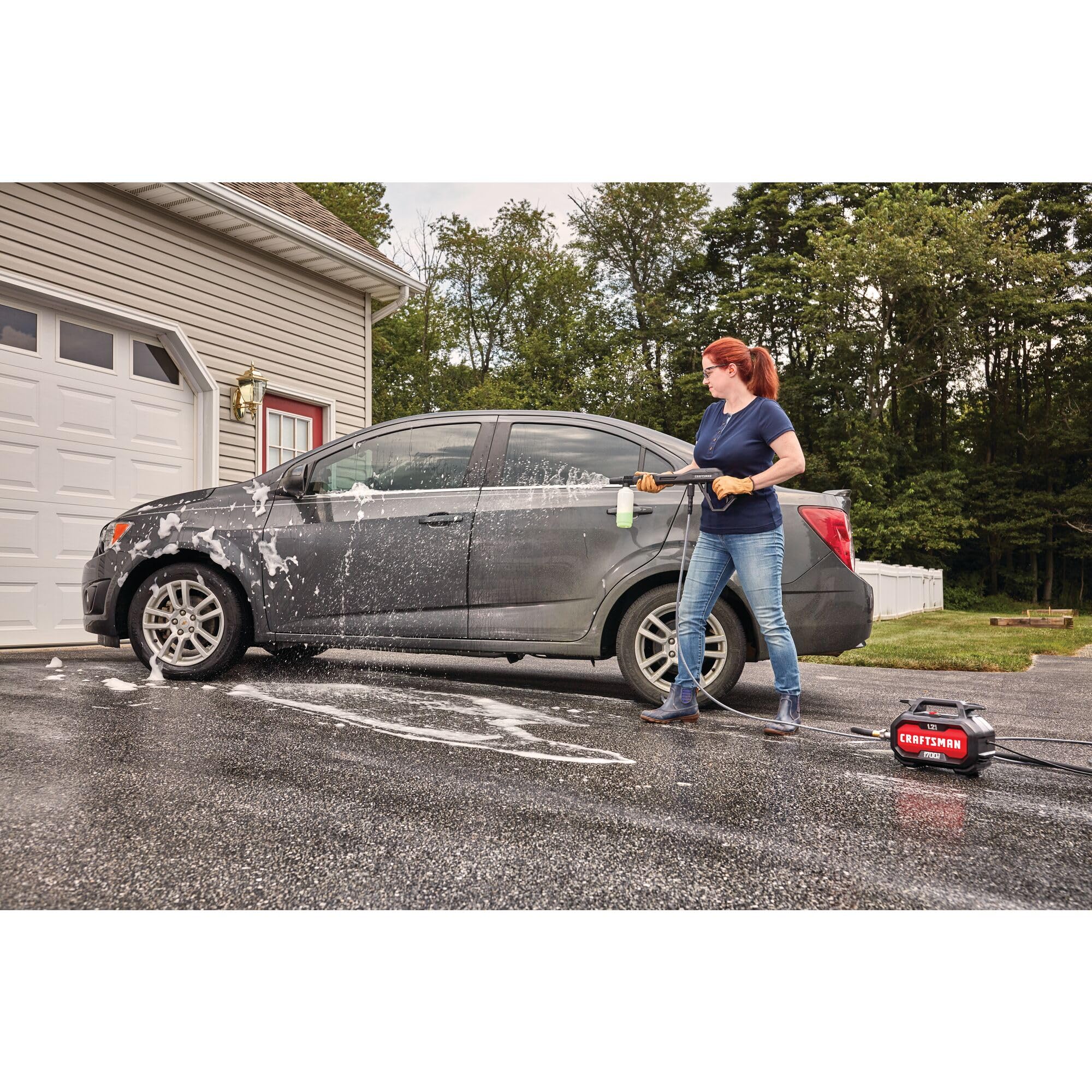 The 1,700 MAX PSI* Electric Cold Water Pressure Washer is compact for storage, but powerful enough for your outdoor cleaning tasks. With a soap applicator and two nozzles, including a turbo nozzle, you have the accessories you need to wash your car or clean your back patio. The pressure washer wand contains a comfort grip that is designed for ease of use.