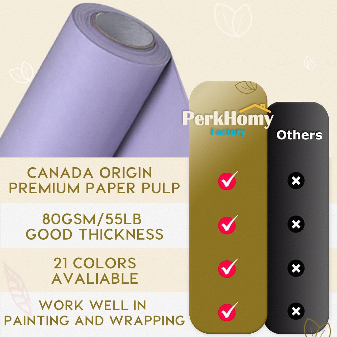 【HIGH-QUALITY NON-COATED CLASSIC KRAFT PAPER】Our kraft paper roll is made of natural, pure, virgin pulps, ensuring the highest quality. It is pliable, soft, and made from 100% recyclable material, which originates in Canada or Japan. The unwaxed and uncoated design allows for breathability, preventing moisture condensation. Moreover, it is made from natural and child-safe materials. 【BUDGET-FRIENDLY CHOICE】 This is an excellent option for crafts, offering endless possibilities. It is a budget-friendly choice for schools and art studios, where children can draw, paint, make origami, and create decorated postcards. It encourages brainstorming and sketching out ideas, allowing the freedom of drawing large block prints or even mural paintings. 【VERSATILE USAGE】 This attractive color kraft paper is perfect for elegant and stylish gift wrapping, and is also an ideal choice for those who prefer environmental-friendly packaging. Additionally, it can be used for various Art & DIY projects, such as decorations, table runners, and bulletin boards. As a covering, it protects against stains, paints, and dust without damaging your cherished items. 【MANUFACTURER】PERKHOMY is a professional manufacturer engaged in the research, development, production, sale and service of many kinds of packaging supplies. Our products are exported to North America, Europe, Australia, Southeast Asia, and other areas. We are committed to providing best products and services.