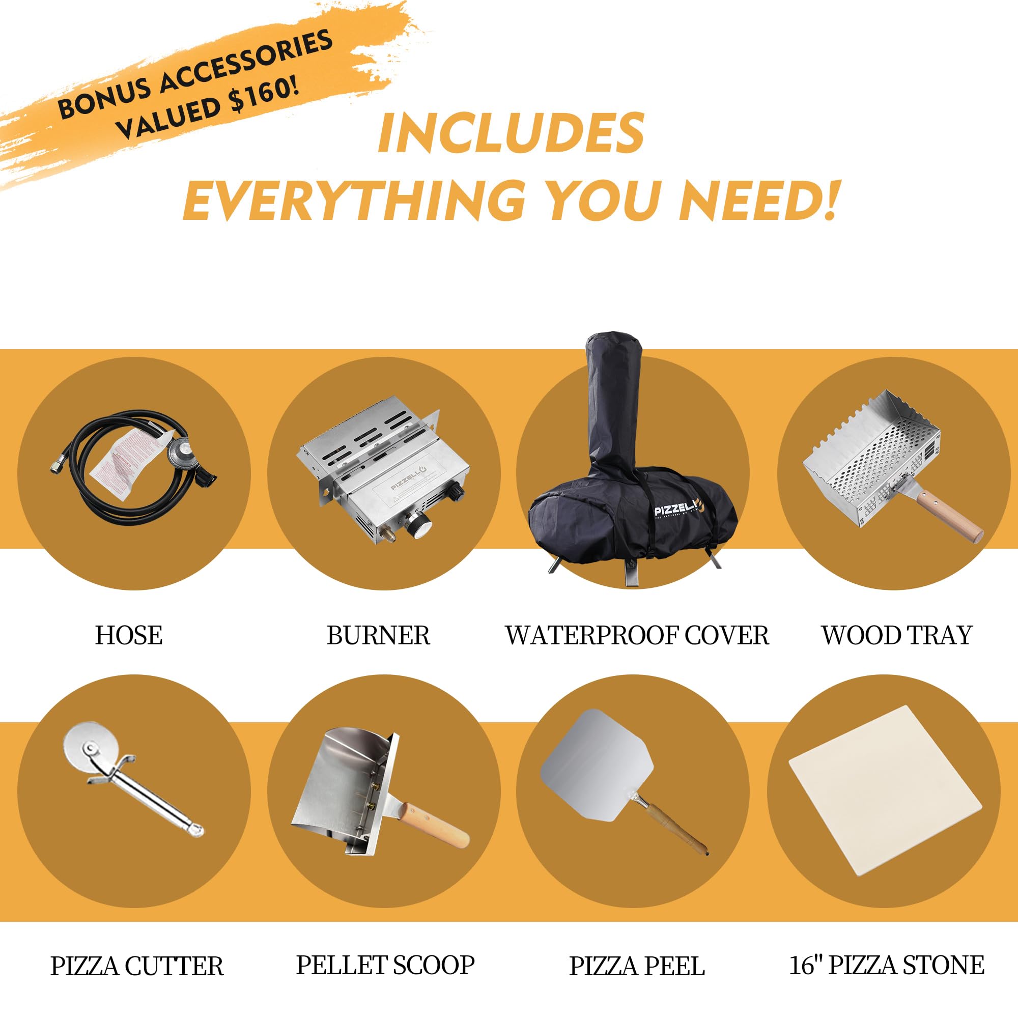 GREAT GIFT IDEA - 16" gas pizza oven comes with 2 Burners ( Propane and Wood burner), Stainless Steel Pizza Peel, 16" Pizza Stone and Waterproof Carry Bag, all Key Accessories are INCLUDED. Perfect for home and commercial use. Makes the perfect Thanksgiving and Christmas gift - Every family deserves great pizza!
