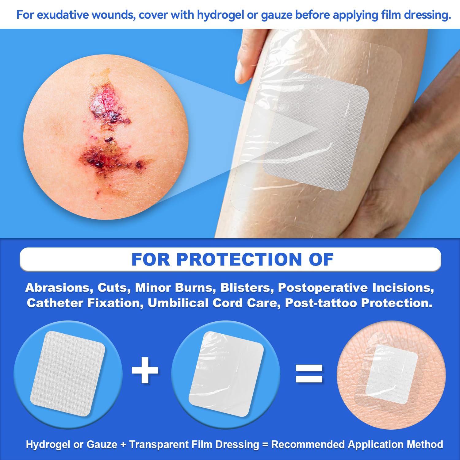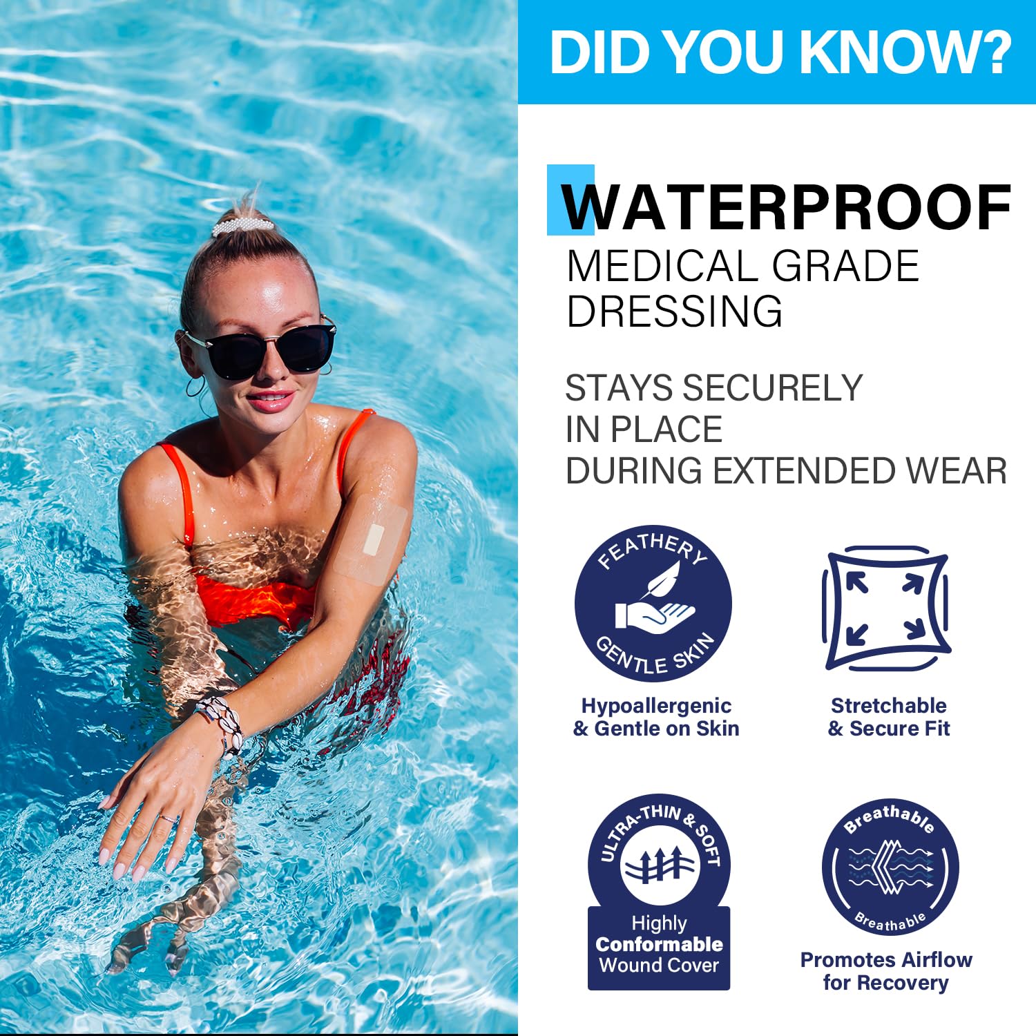 Waterproof & Breathable Protection – Transparent film dressings create a reliable seal that keeps wounds dry and clean while allowing airflow. Shields against water, sweat, and dirt so you can shower, bathe, or swim with confidence.