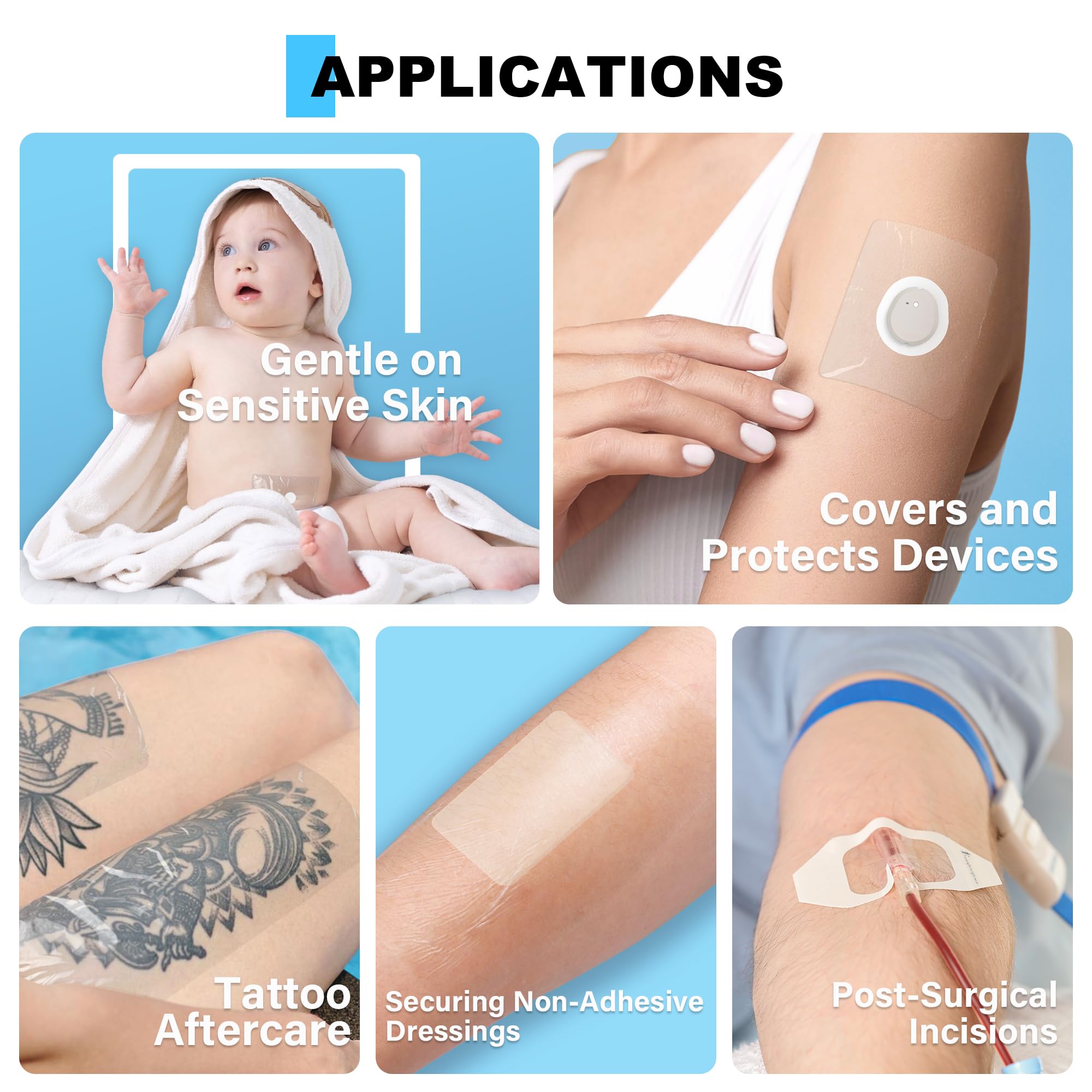 Multi-Purpose Use for IV, Surgery & Tattoos – Suitable for covering IV sites, post-surgery incisions, tattoo aftercare, minor burns, blisters, cuts, scrapes, and abrasions. A versatile choice for everyday wound care or first aid kits.