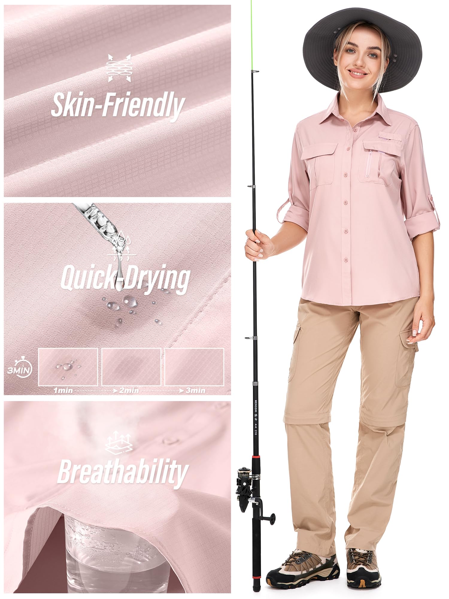 Breathable and Fast Dry:Enjoy the outdoors in style with our women's fishing shirt.The relaxed,casual fit maximizes comfort for outdoor activity.lightweight and quick dry quality polyester fabric wicks moisture away from body to keep you comfortable and dry all day.No worries about the soaking wet problem.Fabric surface is stain-resistance,easy to maintain.