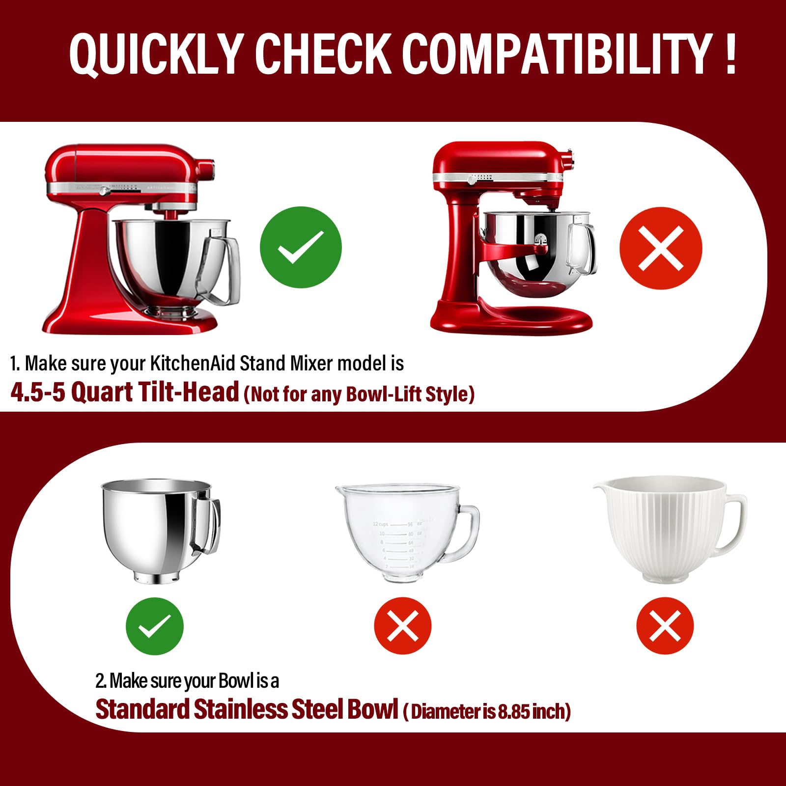 【Wide Compatibility 】With the KitchenAid 4.5 -5 QT Tilt Head Stand Mixer Stainless Steel Bowl. Fully enclosed design, all-round no dead angle, to prevent the mixer in operation splash and overflow.【Suitable for for Stainless Steel Bowls Only.】