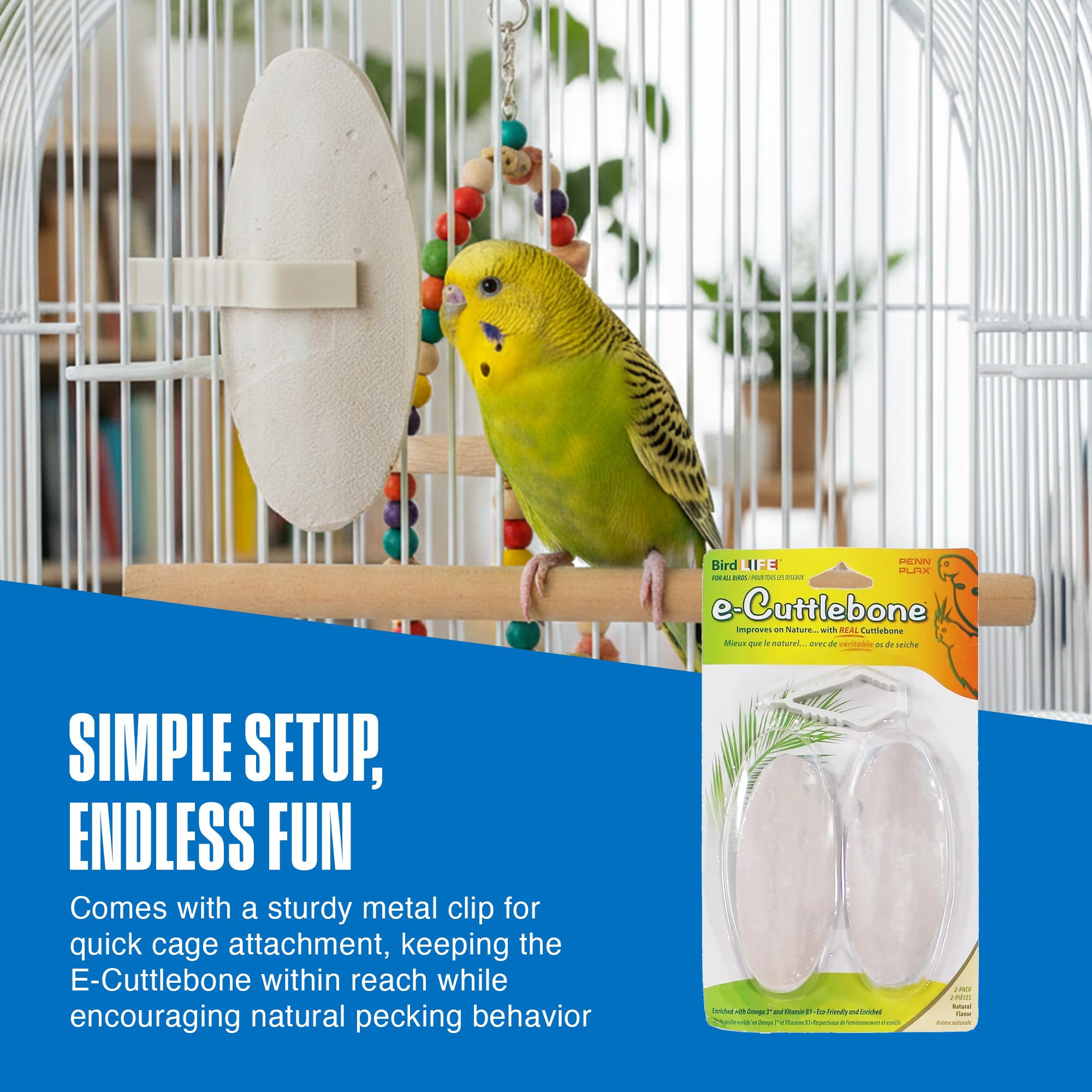 Flavorful Nutrient Blend - Each E-Cuttlebone is enriched with flaxseed oil, honey, and Vitamin B1 to add taste and nourishment, helping maintain vibrant feathers and steady energy for small to medium pet birds.