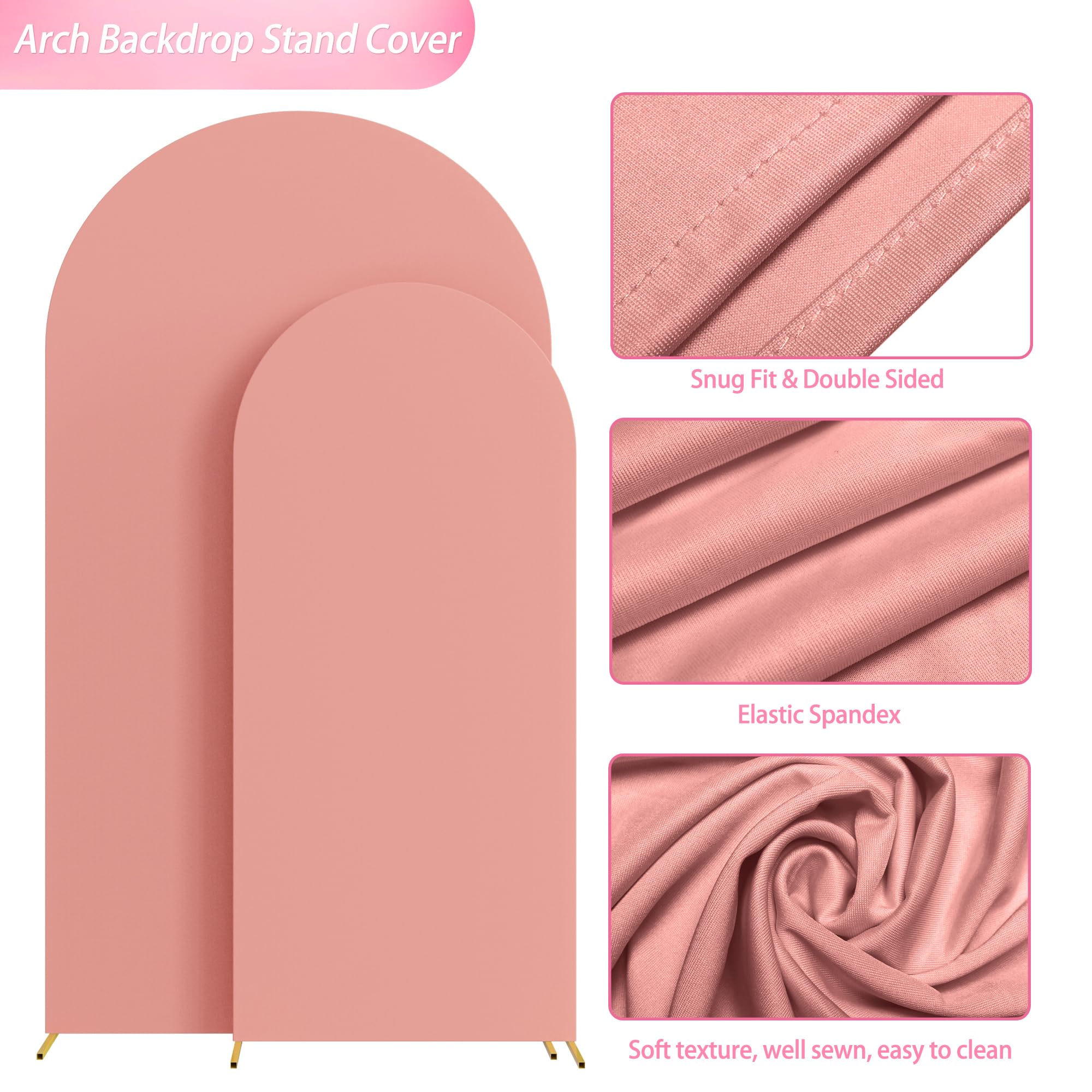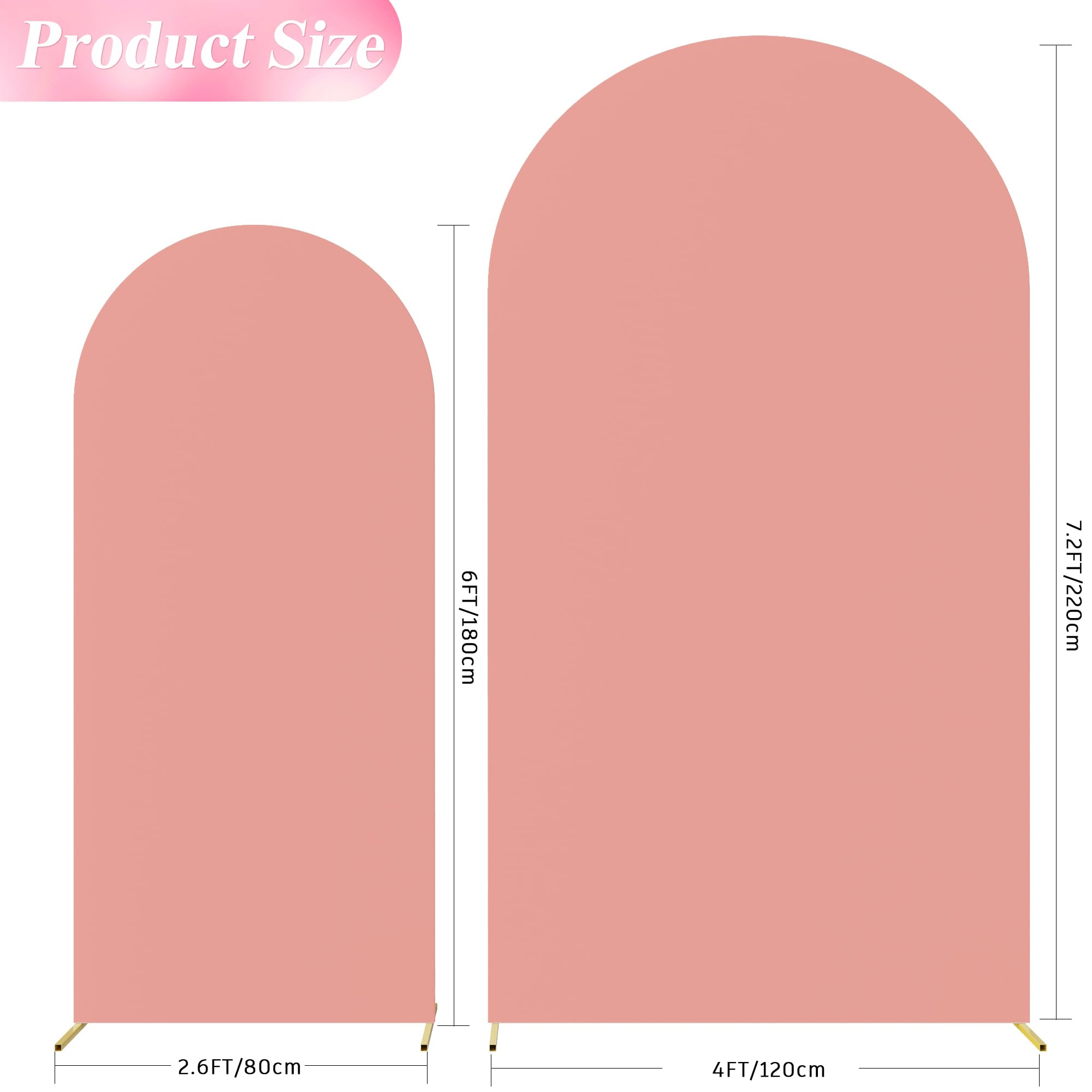 【Arch Covers Package】2 Piece wedding arch cover (Arch stand Not included). Material: Spandex. Color: Dusty Rose. Size: 7.2 x 4ft (HxW) / 6x2.6ft (HxW). Decorate your party backdrop with our wedding arch covers to create an epic background for your celebration.