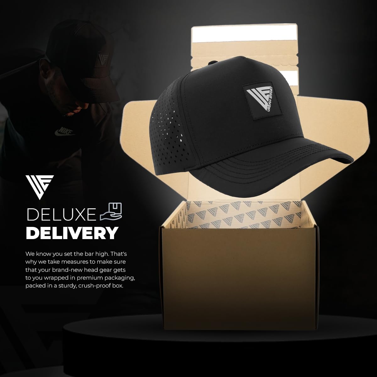 Packed with Care: A premium custom Hydro hat that comes packed in an elegant gift box, to make sure it arrives safely at your doorstep, whether as a new addition to your collection or as a gift for your loved one.