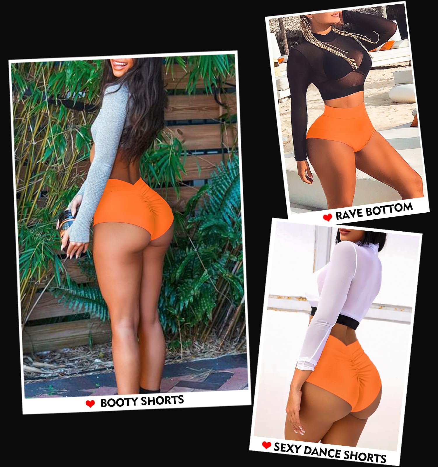 Occasion For Booty Shorts: Booty dance shorts are ideal for daily wear, party, rave outfits, festival clothes, pole dance, Halloween costumes, fitness, yoga, running, cycling and any types of workouts