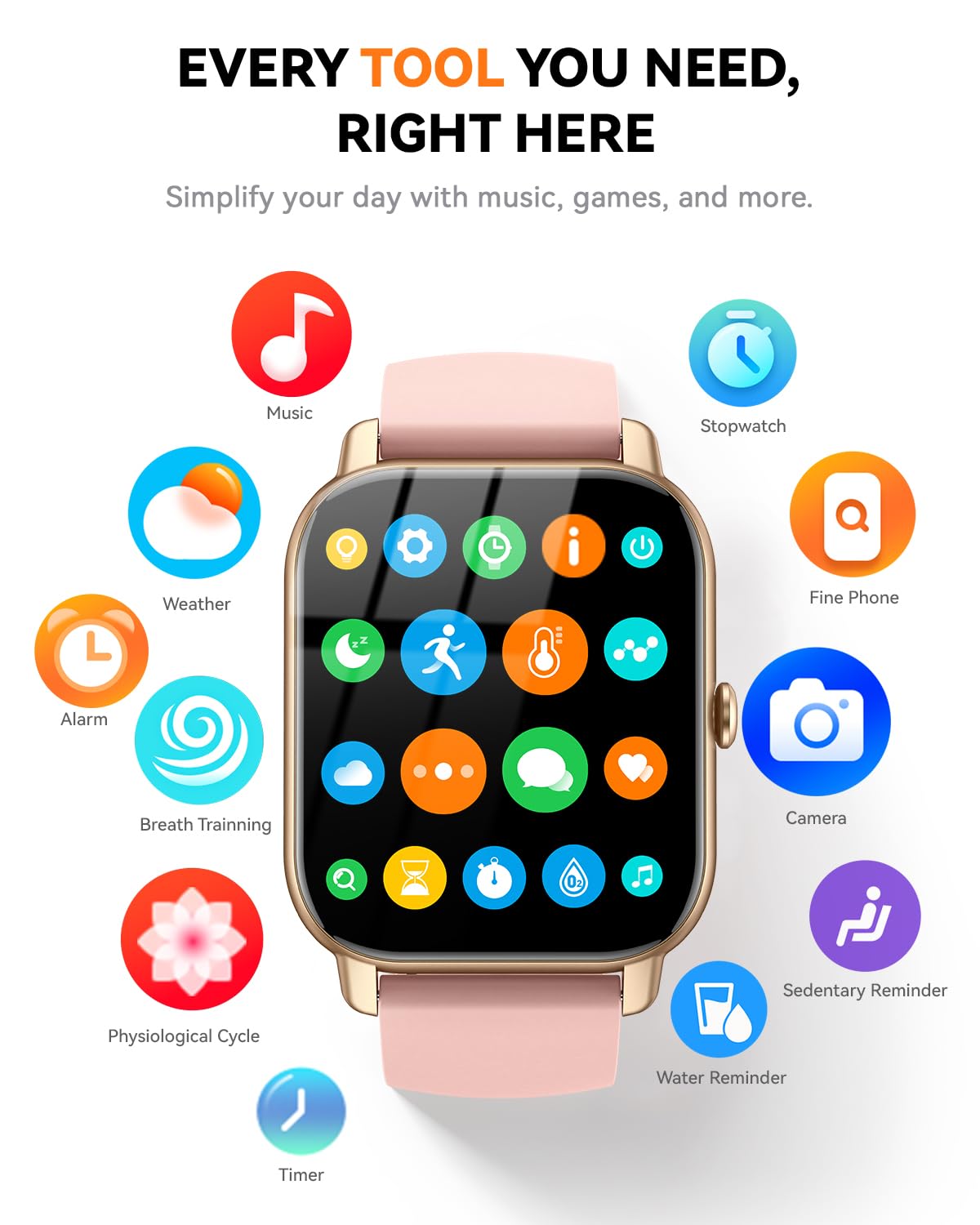 Multifunctional & Widely Compatible:**Effortlessly manage camera/music/weather/stopwatch functions—all from your wrist. Compatible with iPhone (iOS 9.0+) and Android (5.0+), this smartwatch ensures seamless connectivity for daily convenience. More than a fitness tracker, it's a stylish all-in-one wearable for smarter, healthier living