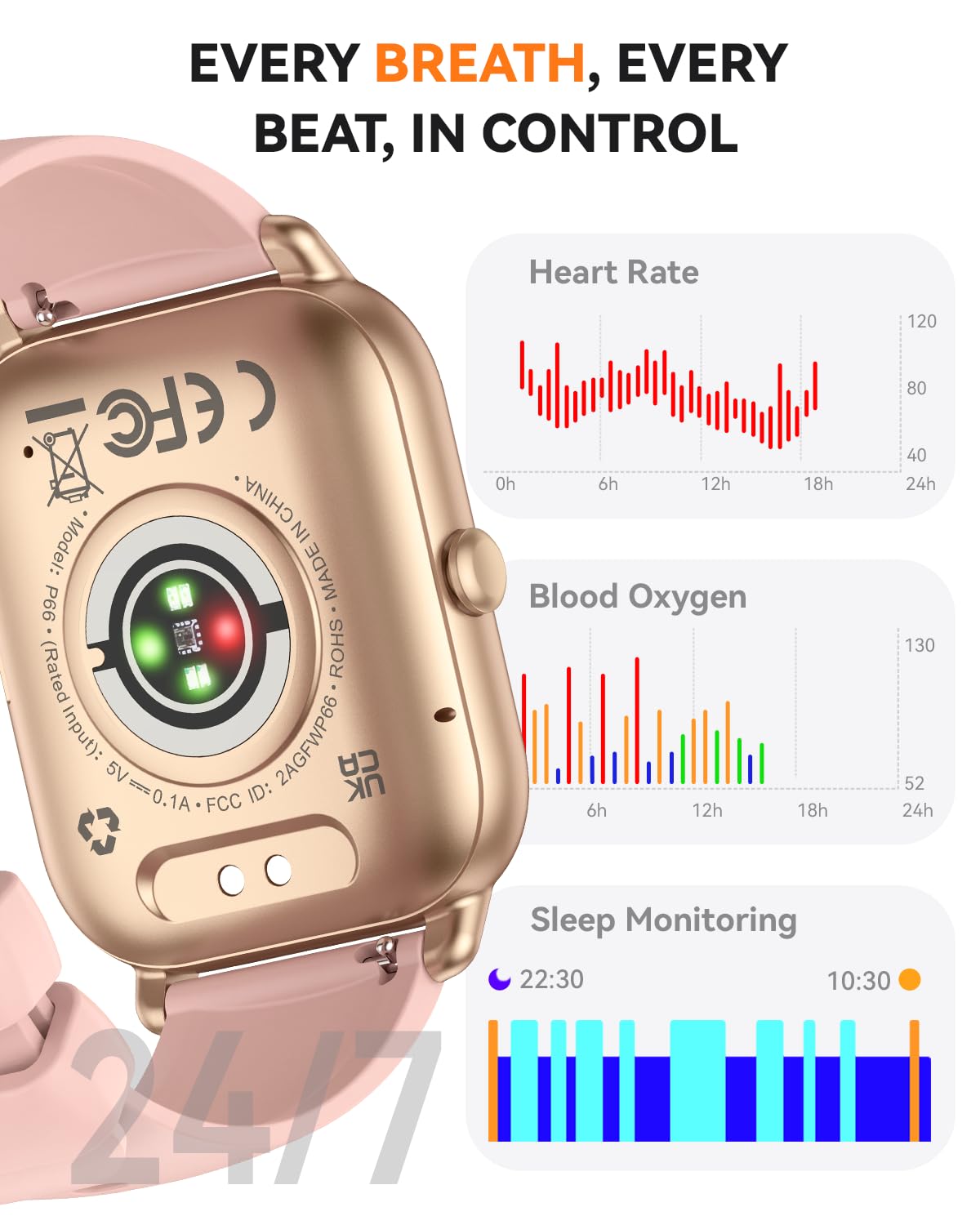 IP68 Water Resistance and Reliable Battery:** This smart watch is built for those who lead active lives, proudly showcasing an IP68 waterproof rating that protects against splashes, sweat, and brief submersion—making it ideal for workouts, outdoor pursuits, or drizzly days. Its robust 300mAh battery ensures 5-7 days of active performance and up to 30 days on standby, lessening charging interruptions. It is well-suited for all-day wear, from gym sessions to outdoor activities and daily travels.