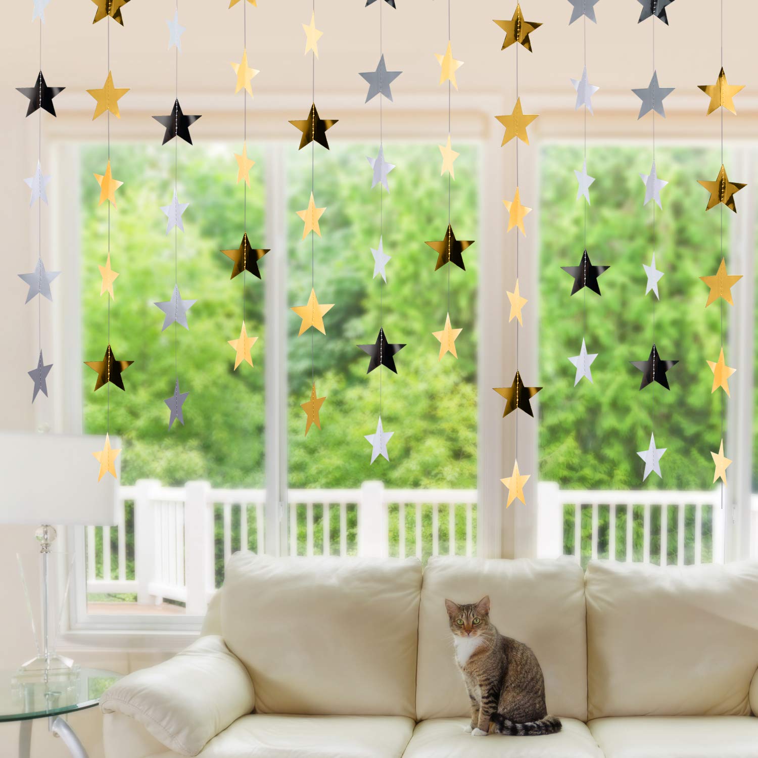 Package includes: 10 x star paper garlands, each garland is 13 feet/ 4 meters long, total length is 130 feet/ 40 meters; Enough quantity can reach your party decoration needs