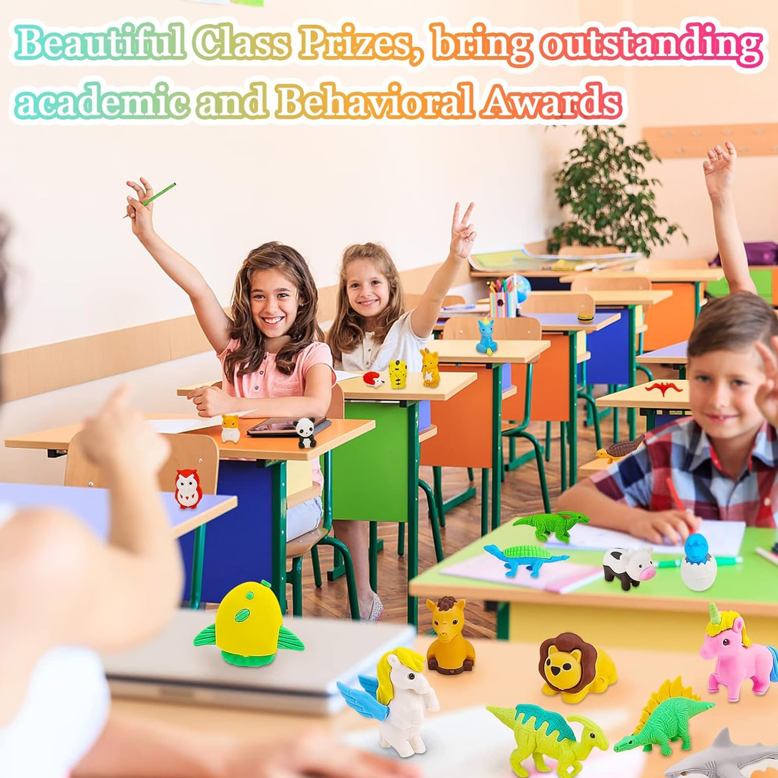 HIGH QUALITY: These mini fun animal erasers made of non-toxic and eco-friendly rubber, erase pencil mark easily, and safe for your kids ages 3 and up to play as games and toys