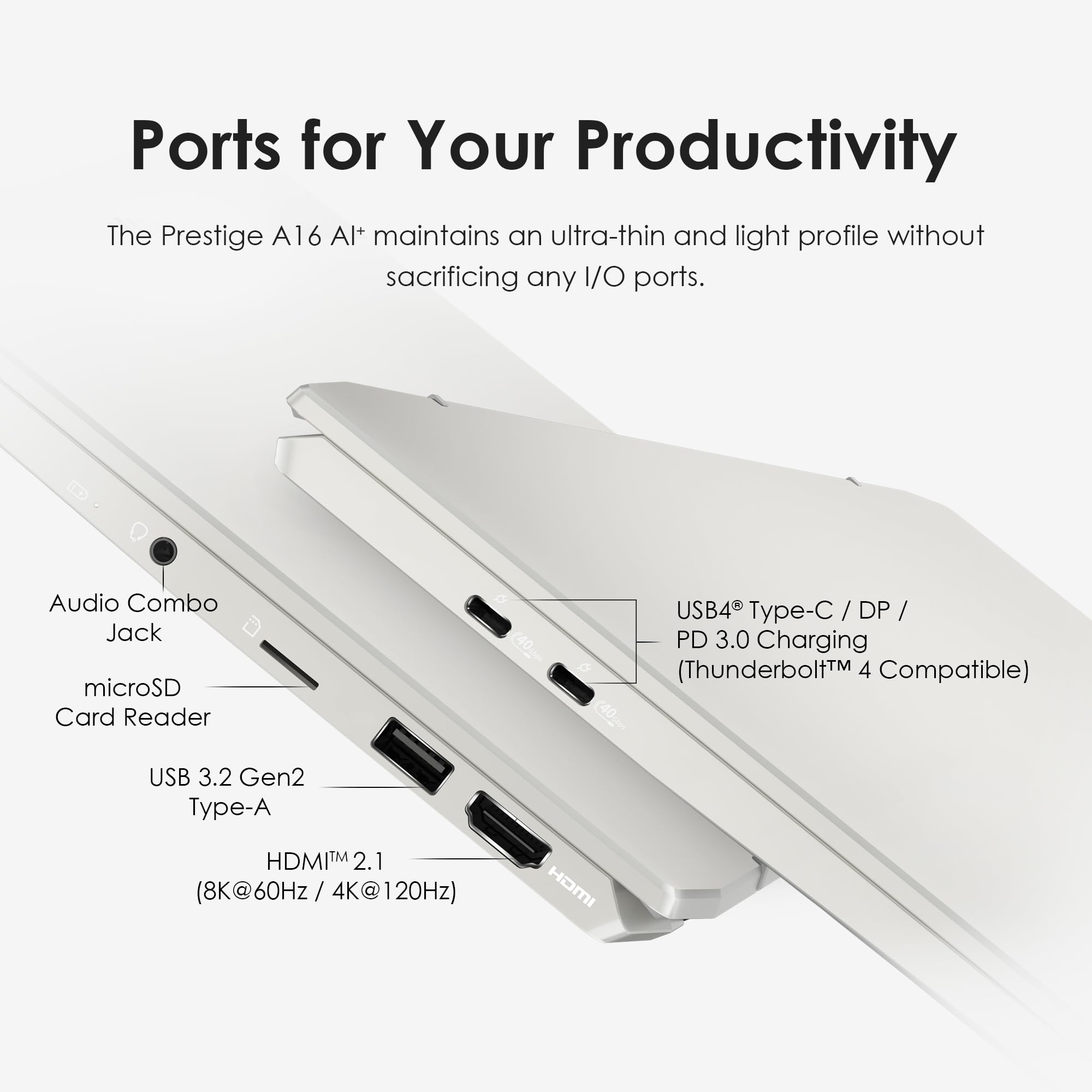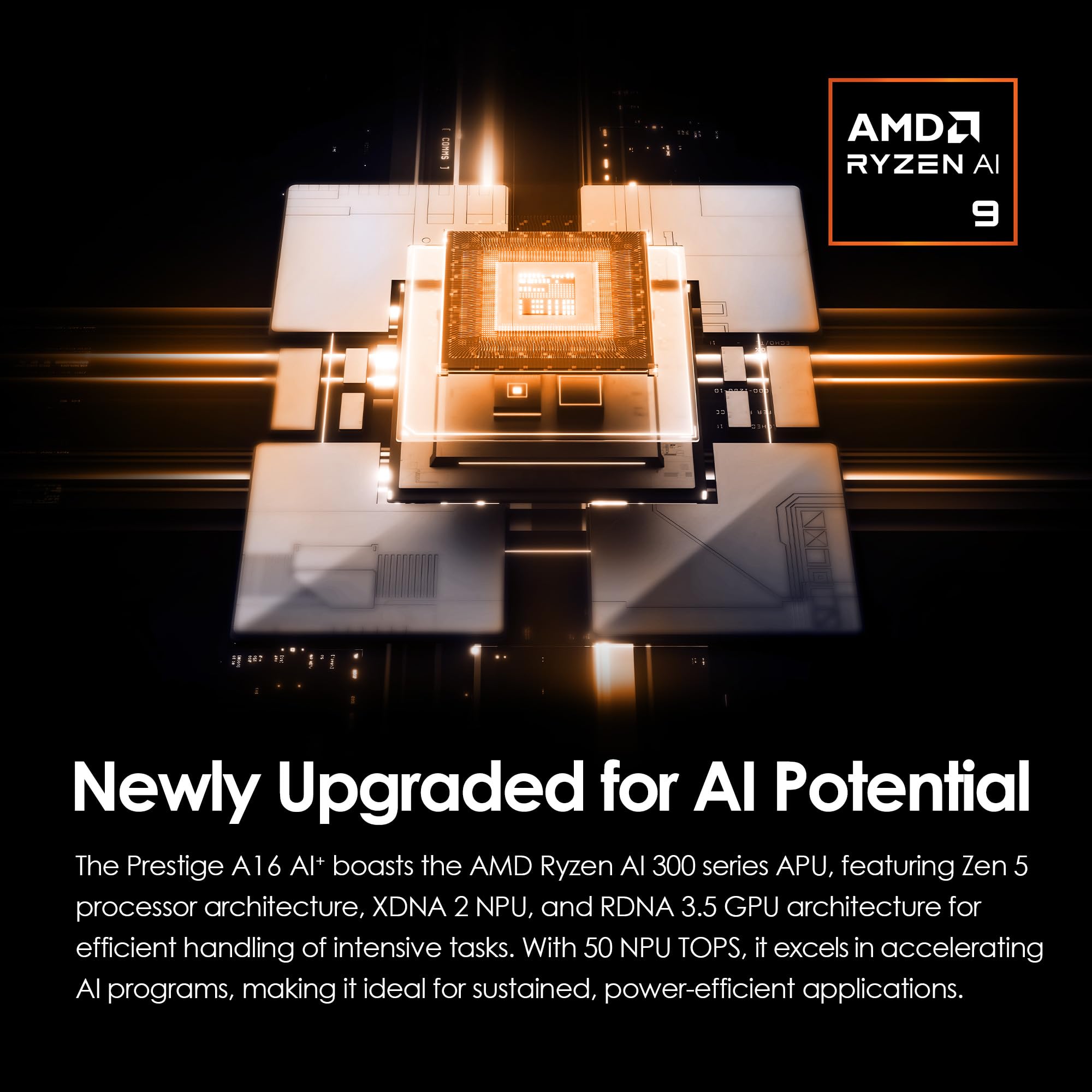 MSI Prestige A16 AI+ (2024) 16” QHD+ Business Laptop: AMD Ryzen AI 9-365, Radeon Graphics, 32GB LPDDR5x, 1TB NVMe SSD, Type-C, WiFi 7, Win 11 Home: Urban Silver A3HMG-016US