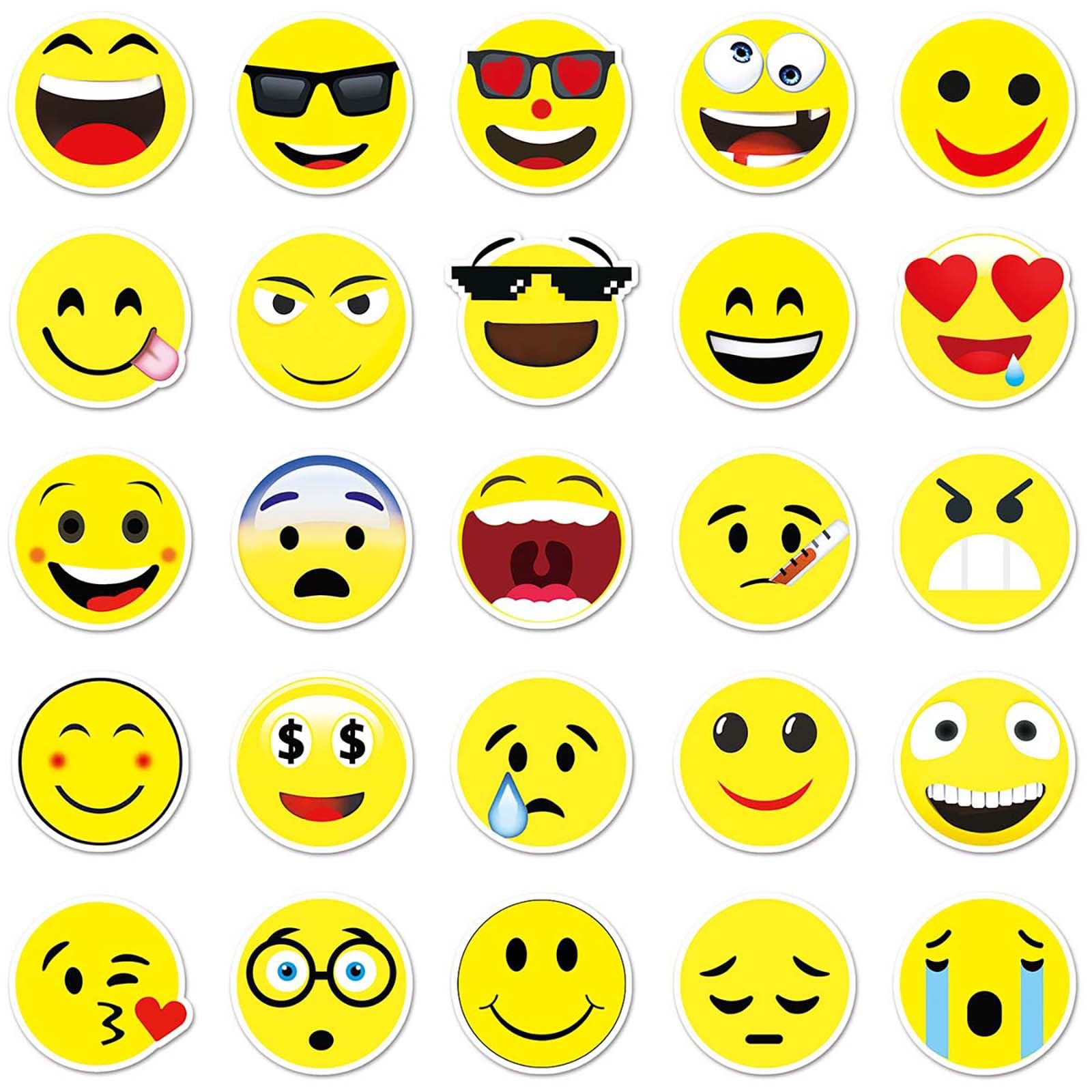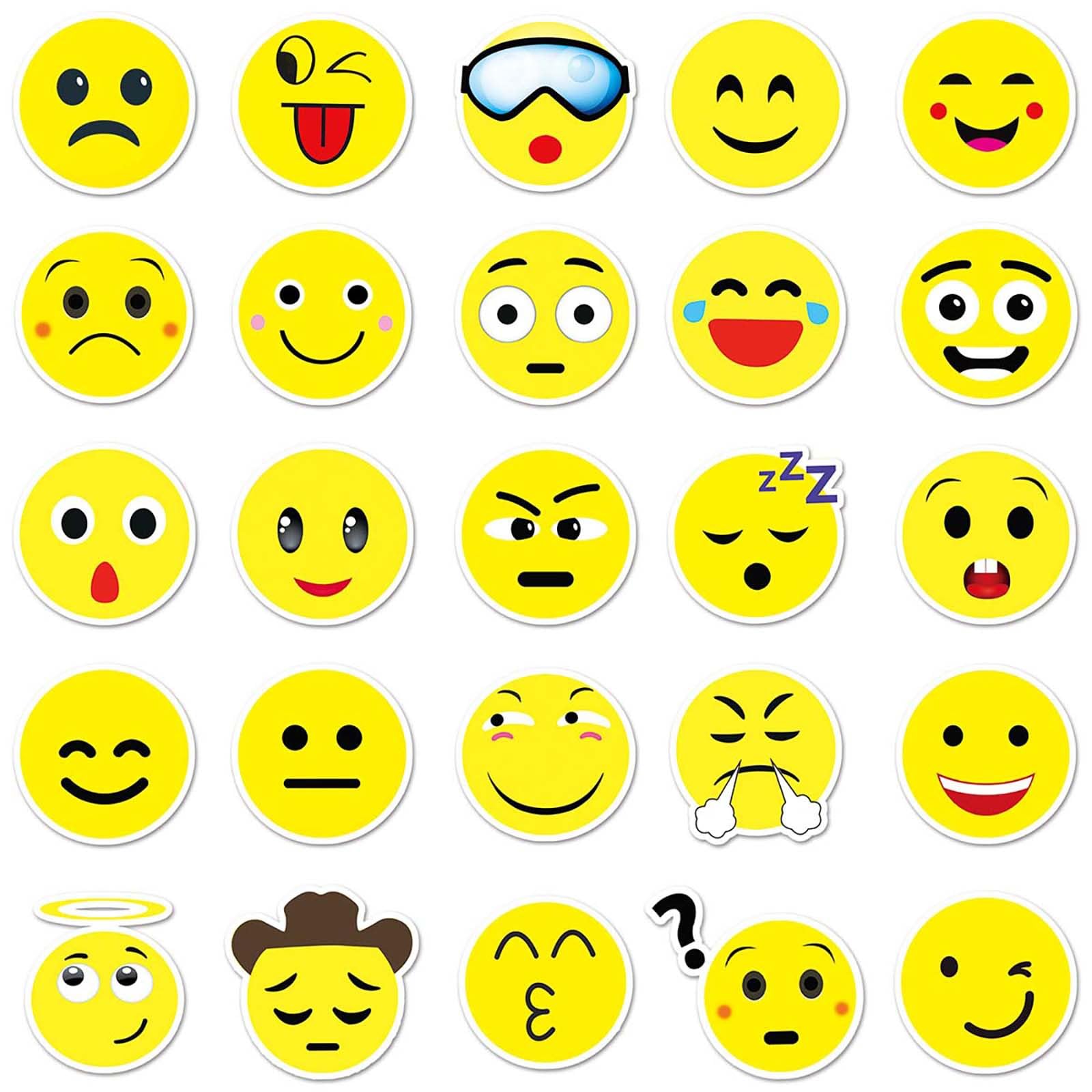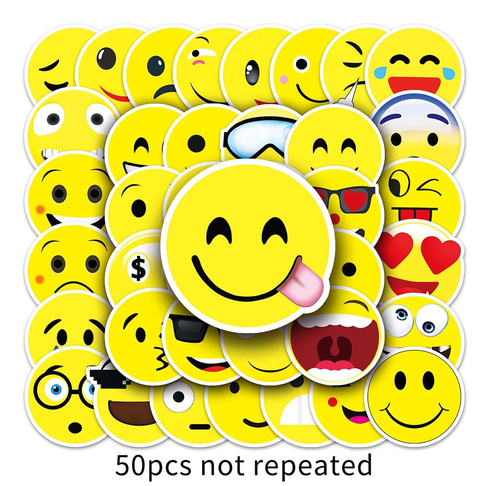 50 Pcs Non-Repeat Smiley Faces, Full Size Range: Covers various expressions (winking, decorated), 1.96-3.15inch gradient sizes, rich patterns, suitable for scrapbooks to walls.