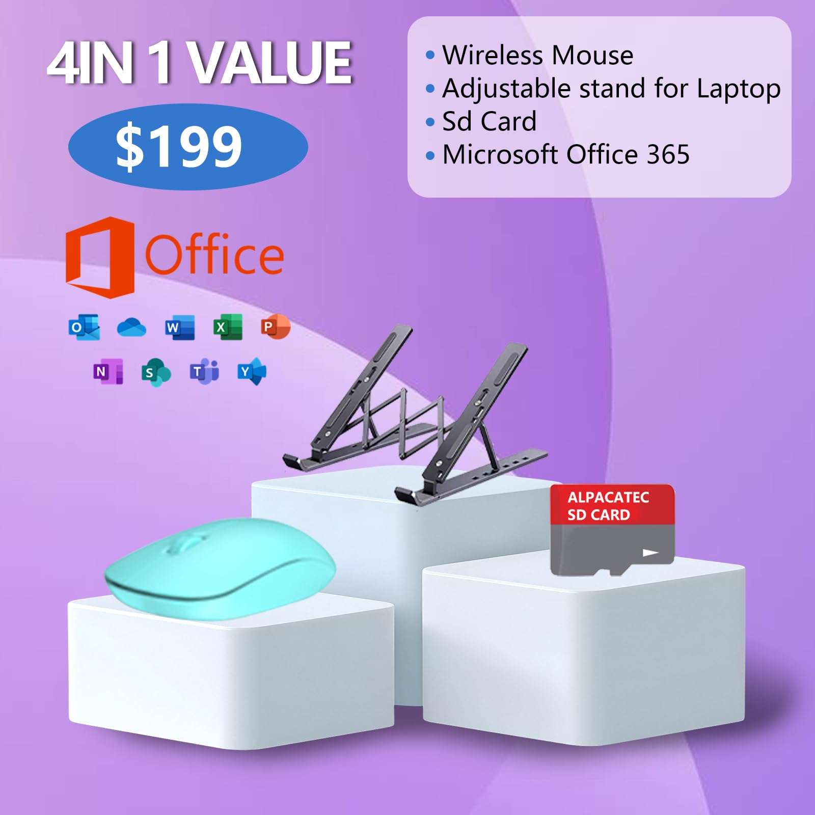 【5-in-1 Alpacatec Accessories】: Includes ITB Cloud Storage,64GB SD card, adjustable laptop stand, and wireless mouse. Free Microsoft Office 365 Personal 1-year subscription included Al Powered Copilot.