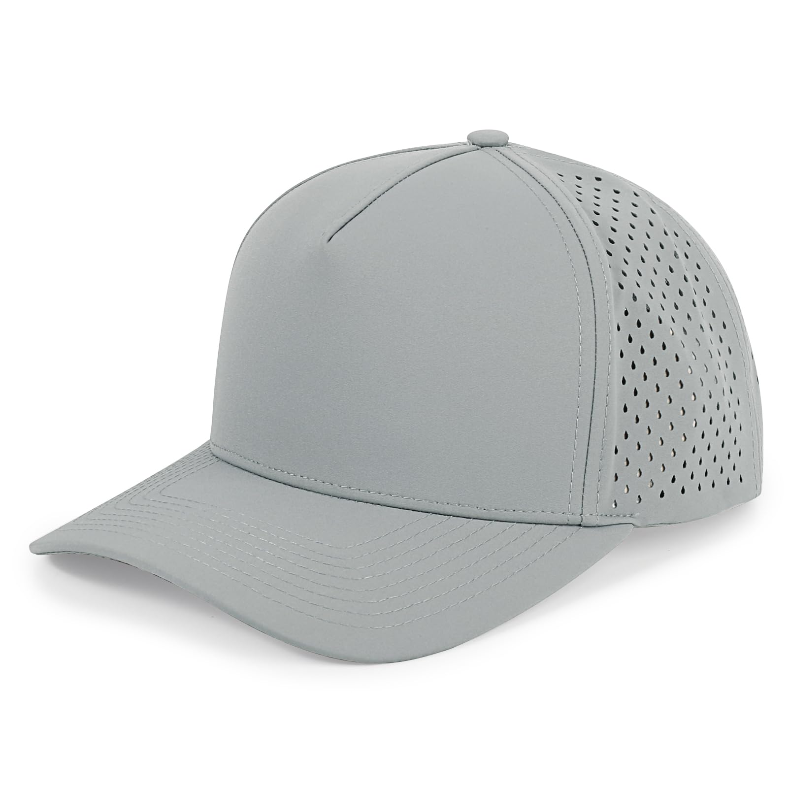 Design: structured front panels, 6-panel cap, curved brim, laser-perforated side & rear panels for breathability, and soft touch snapback closure